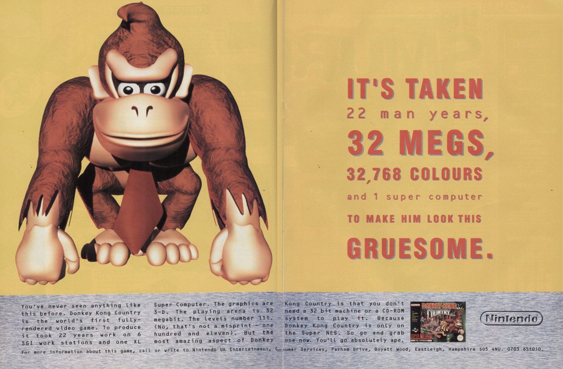 Nintendo's bluff came in the form of Donkey Kong Country, a total reimagining of the franchise that had catapulted the company to the big leagues in the first place. It was a game a long time coming; outside of that summer's largely overlooked remake of the original arcade title for Game Boy, Donkey Kong hadn't featured in a new game since Donkey Kong 3 a decade prior. In fact, besides the occasional cameo in unrelated works and the mysterious Return of Donkey Kong for NES (announced but never shown), the former arcade superstar had all but vanished. Kong's disappearance was quite an ignominious twist for a character who had once been one of the medium's most recognizable faces.