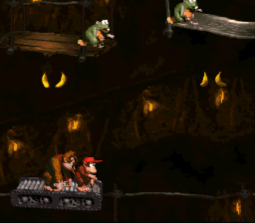 Never mind that DKC was, at heart, a fairly standard platformer. Kong and his sidekick Diddy could run and jump per usual, attack with an open-palmed ground slap, roll into foes like Sonic, and ride around on a variety of animal pals. There was really nothing about DKC that hadn't been done dozens of times before by dozens of other platformers, often in a much more fashion. But it didn't matter. DKC wasn't about revolutionizing the way games played; it was about convincing gamers not to trade in their Super Nintendo systems for something better. And it worked.