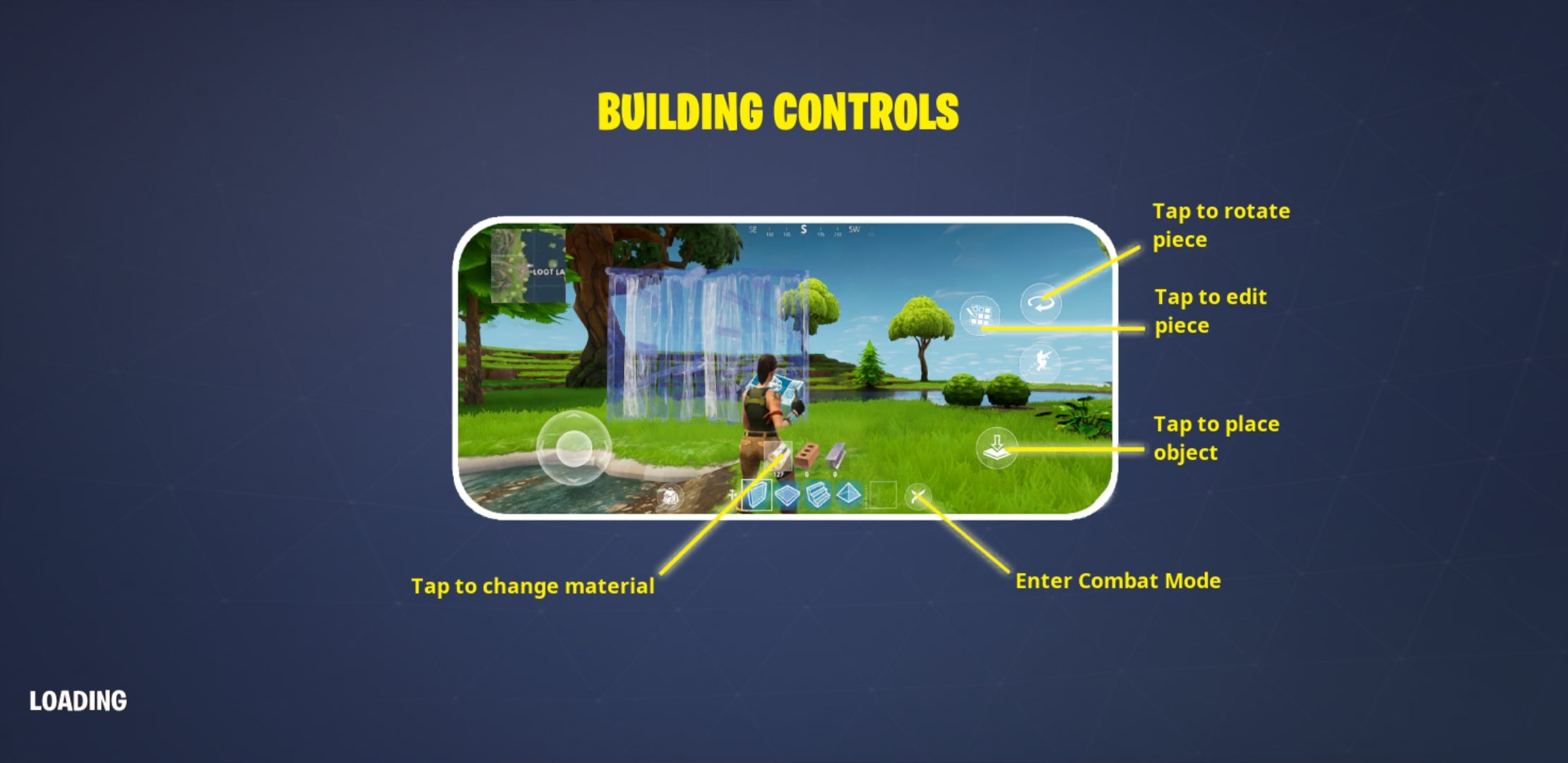 One of the crucial parts of Fortnite is the building, but unfortunately this is probably the most awkward aspect of the mobile version. The loadout bar at the bottom of the screen can be tapped to select weapons, and beside this is the icon which switches the loadout for the building menu. It’s worth noting, that nothing is removed – everything you expect from the menus on PC or console are here. But the actual act of building doesn’t flow as well as other platforms. There seems to be a very slight delay between pressing the build icon and the ramp, platform or wall appearing. It takes a lot of getting used to and you can see this in the players around as people grind to a halt to juggle their building options. Don’t expect outlandish build-offs just yet.