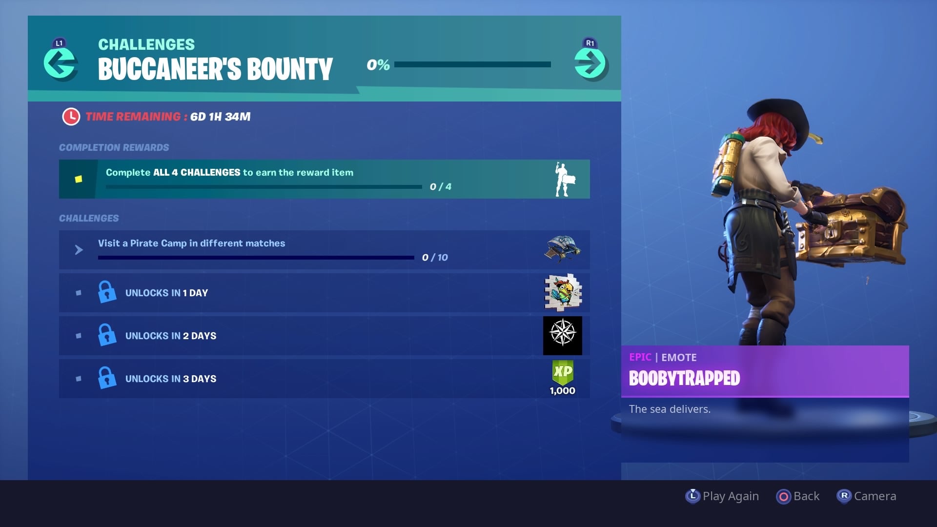 Fortnite Buccaneer's Bounty Rewards and challenges - Plunder Glider and Boobytrapped emote