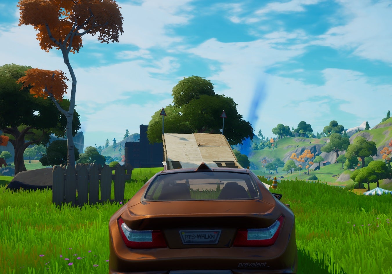 For this Fortnite challenge, you'll need to find a vehicle and launch yourself through a fiery ring to earn your XP.