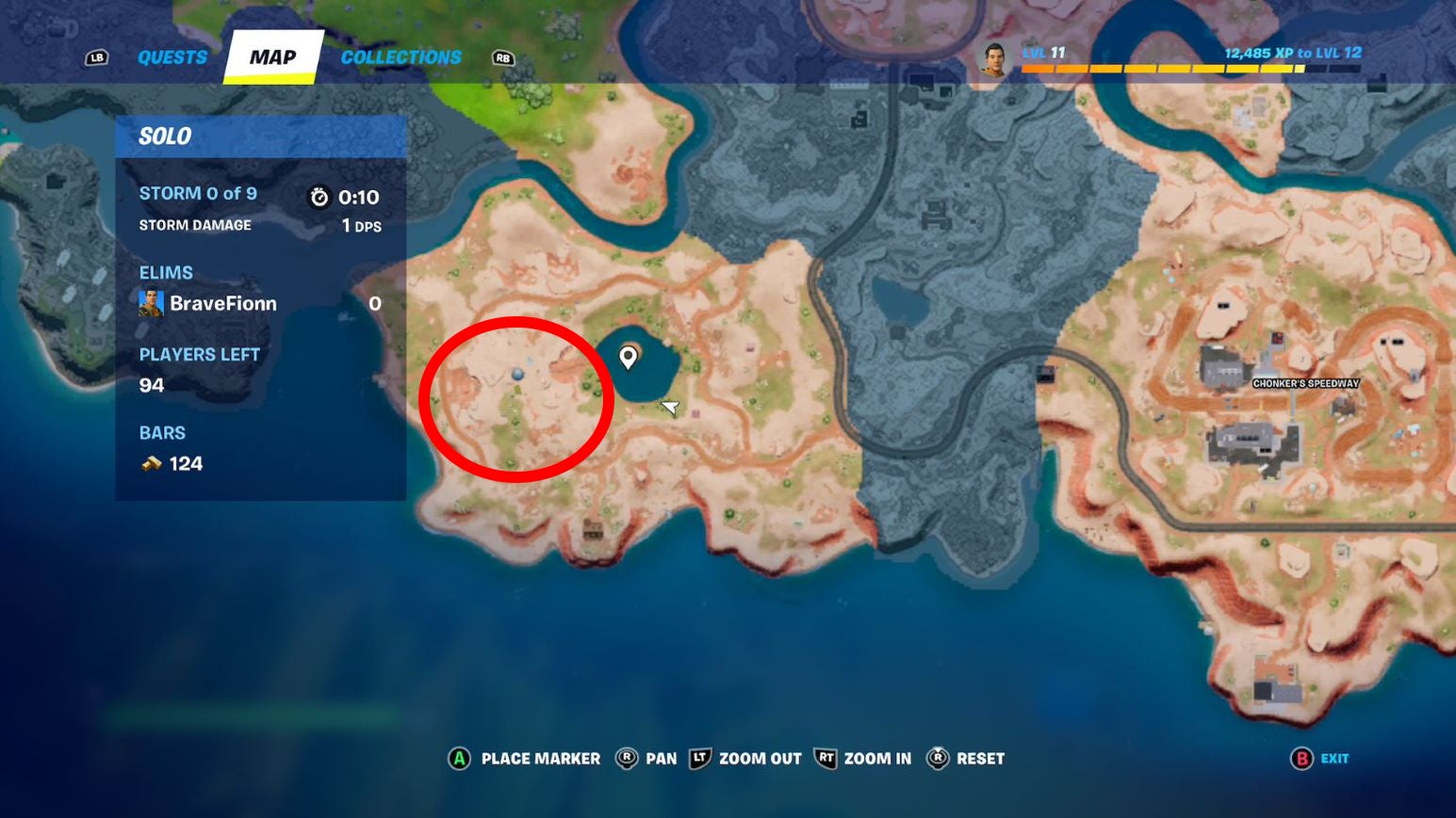 Since the oasis is near the map’s southern edge, you’ll want to land nearby and knock this quest out quickly. The storm closes in fast and, unless the eye is near you, you probably won’t be able to make it to safety without taking a lot of damage.