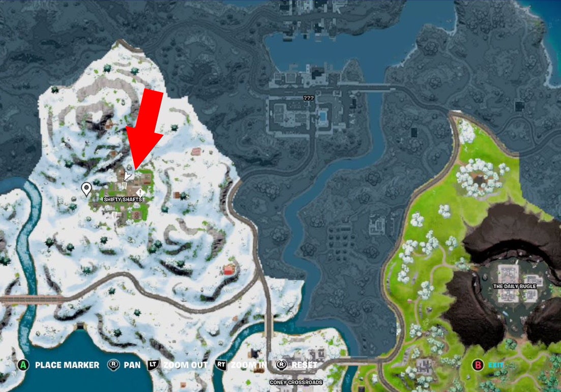 Shifty Shafts is a new location in the snowy biome, west of the Daily Bugle and north of Coney Crossroads. We’ve marked it in the map image below.