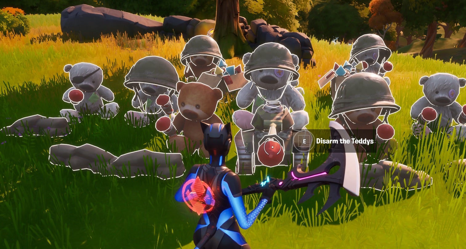 There's a three-part secret mission in Fortnite right now that involves diffusing a fight between the garden gnomes and teddy bears.