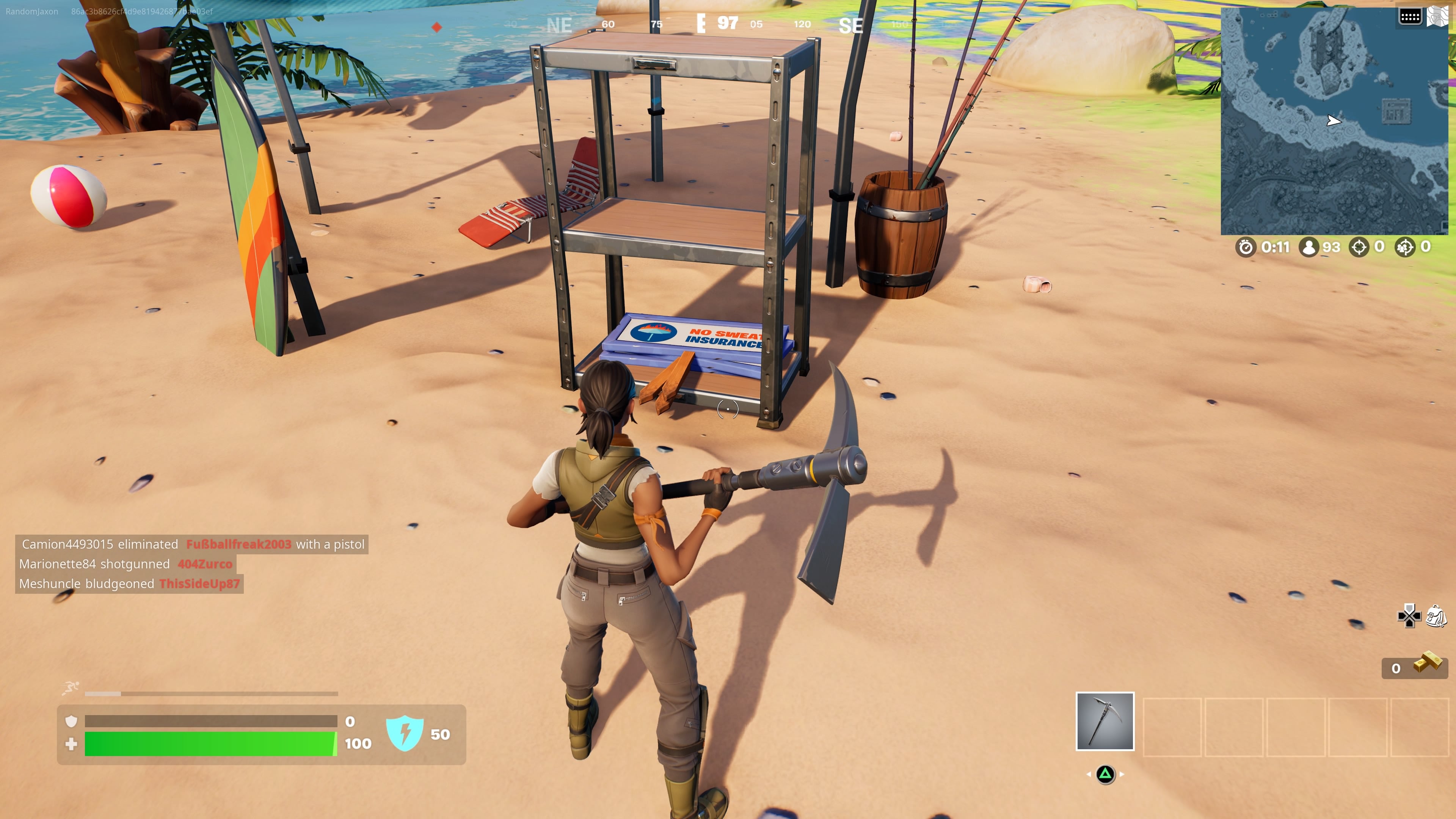 This quest has two steps, both of which are fairly simply. First off, jump into any game of Fortnite and head to the beaches either East of Sanctuary or Sout hof Shifty Shafts. Once there, you’ll find several sign racks across the beach where the No Sweat signs can be found.