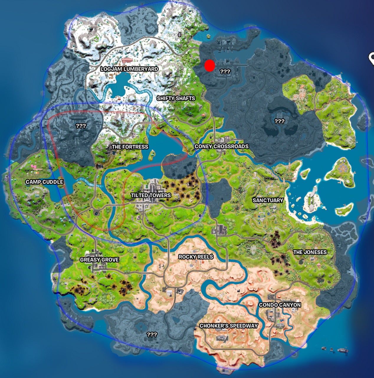Token northwest of Tilted Towers