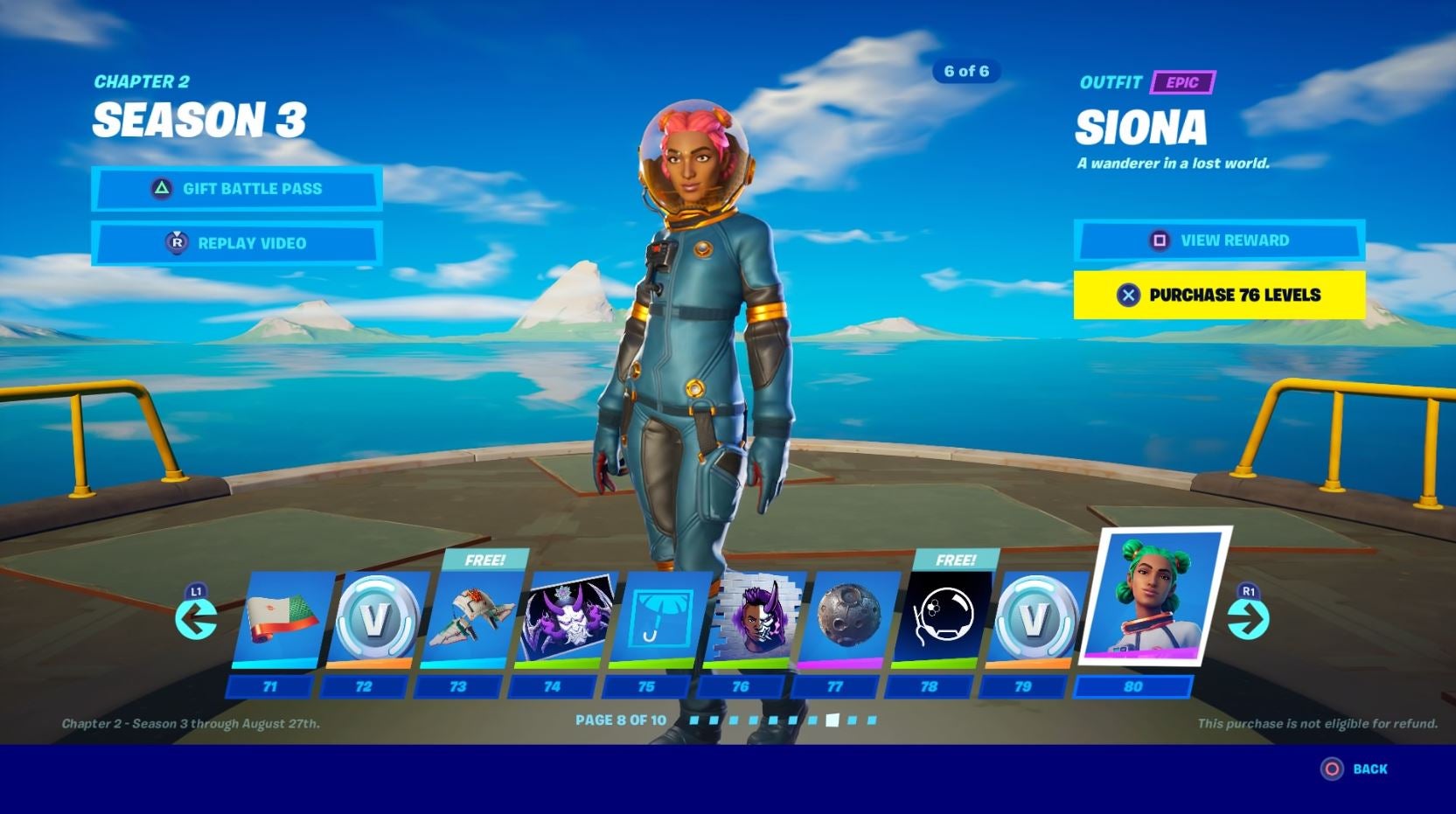As soon as you buy the Battle Pass, you get access to Ocean. She's part of the Ocean Rising set, and has tons of cool little details in her outfit. You collect more items to go with her in the rest of the tiers.
