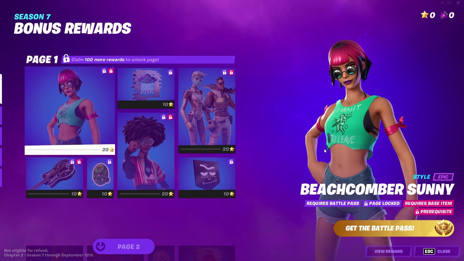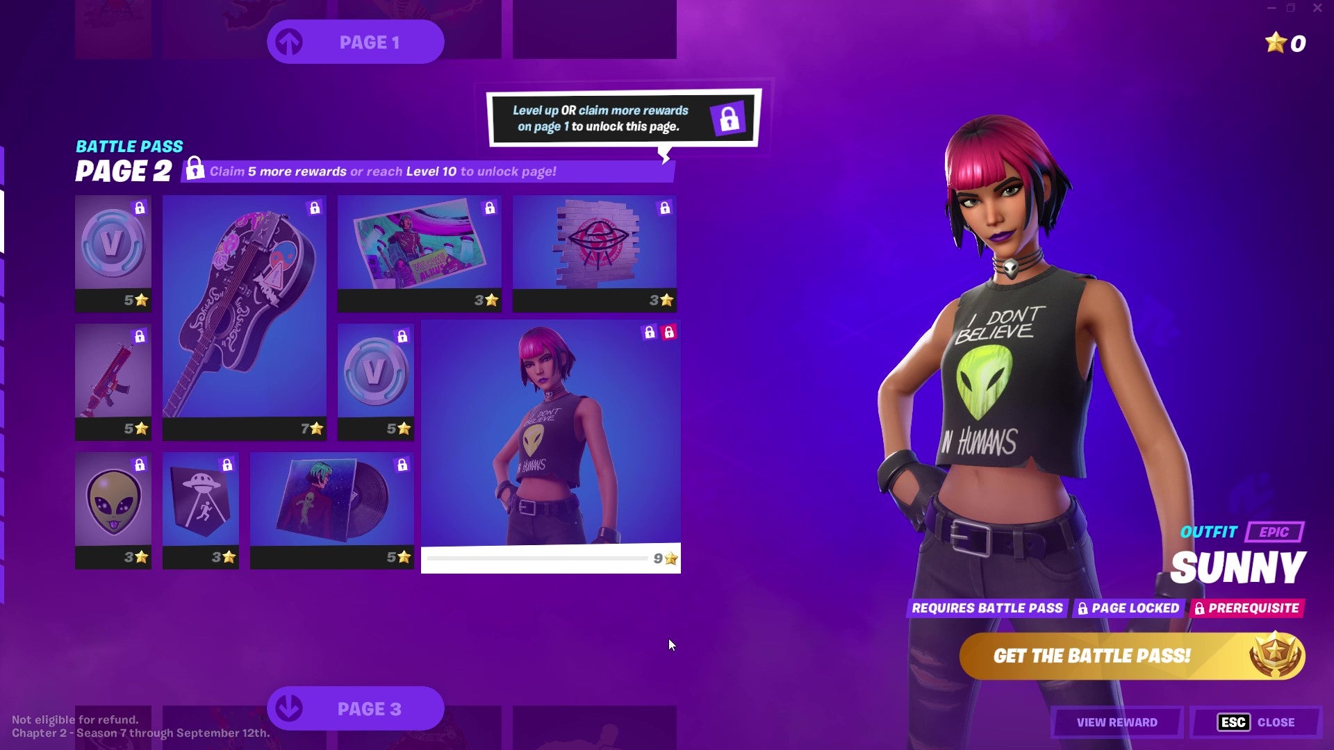 There's also Sunny, a conspiracy theorist and social media personality who seems to have a lot more sympathy with aliens than with humans. Find her skins on Pages 2 and 3 of the Battle Pass, as well as in the bonus rewards.