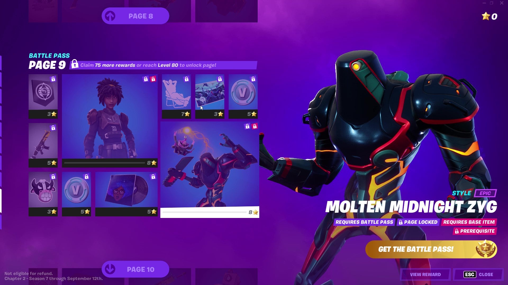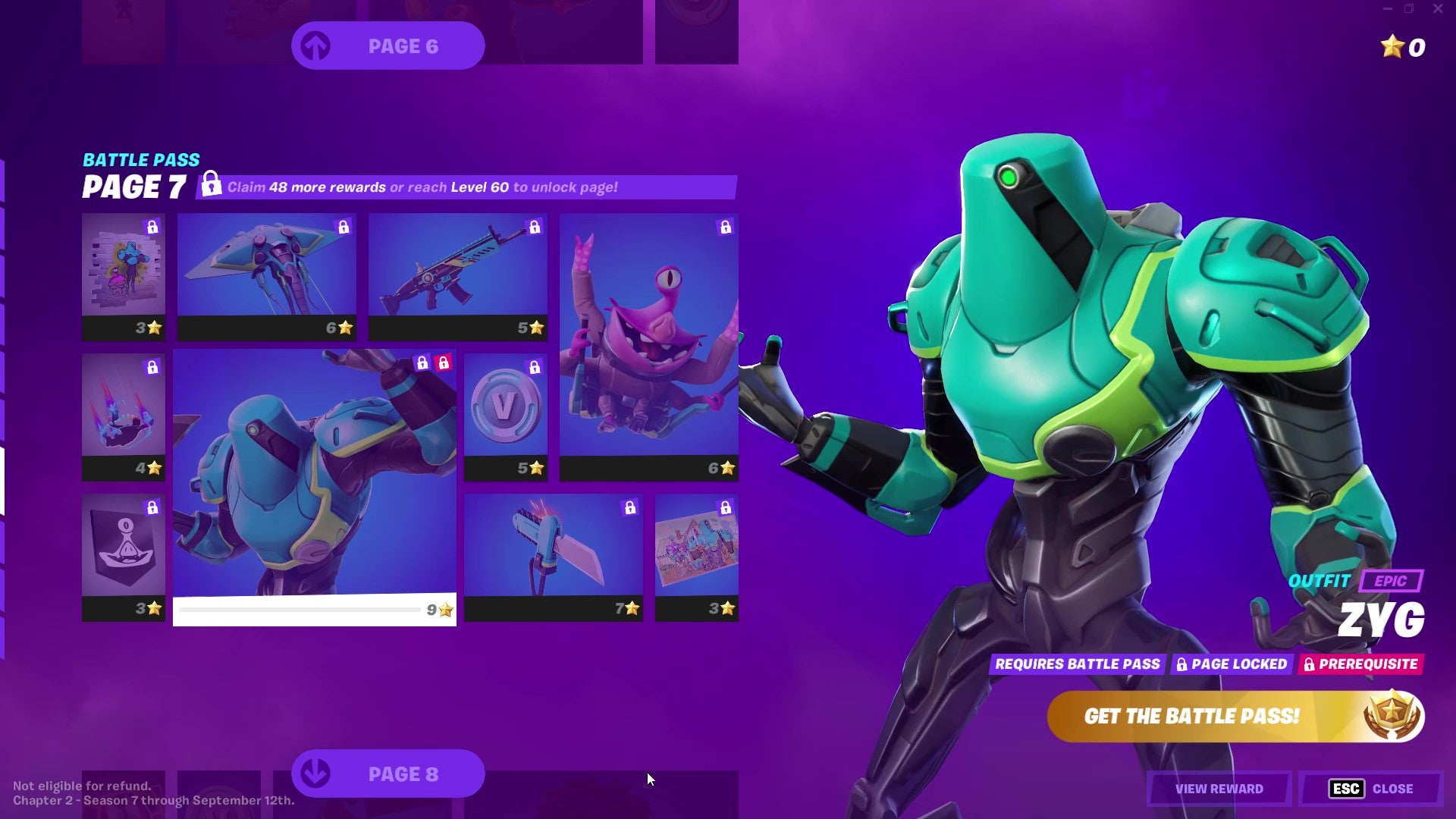Giant mecha battle droid Zyg is yet another character whose exact affiliation in the Invasion story-line seems dubious. As with Joey and Sunny, though, you can't deny how cool they look. Zyg gets three skins at Pages 7 and 9 of the Battle Pass, and in the bonus rewards.