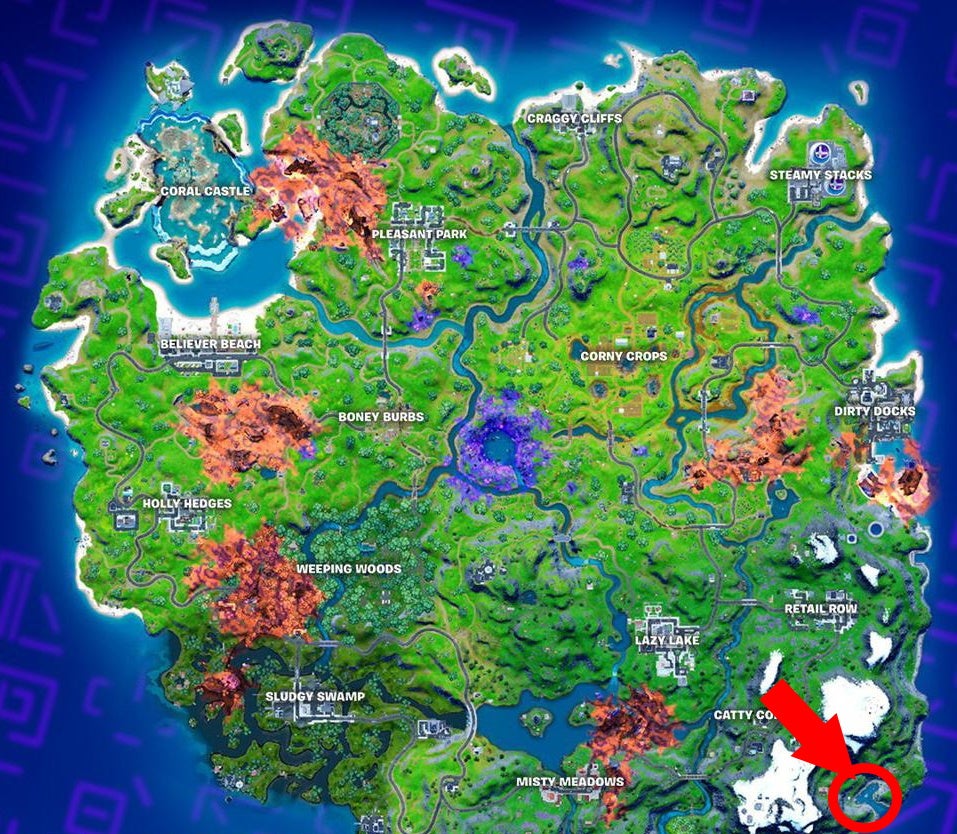 Shipwreck Cove is the small inlet in the southeastern part of the map. It’s easy to miss, and it’s also easiest to reach if you drop close by. The storm swallows the cove quickly, since it’s at the map’s edge. There’s likely also going to be a fair bit of competition while Visit Shipwreck Cove is on the daily punchcard challenge list. Expect to run into at least a few other challengers.