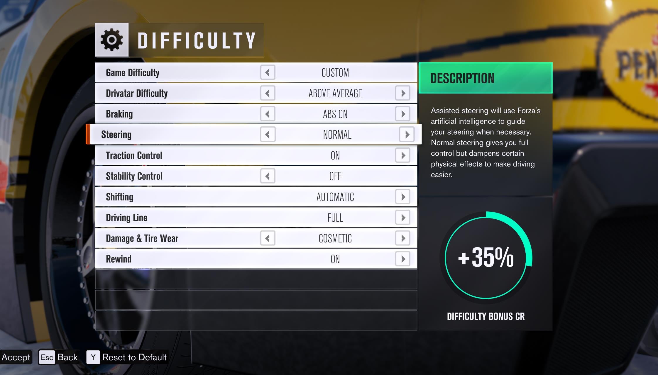 The past few Forza games used an ingenious system that rewarded players more in-game credits the more handling assists they turned off. The system took into account the number of rewinds you used in a race, and the AI difficulty you set. Because all of those settings could always be changed prior to the start of every race, myself and many others played around with them to maximise profits.