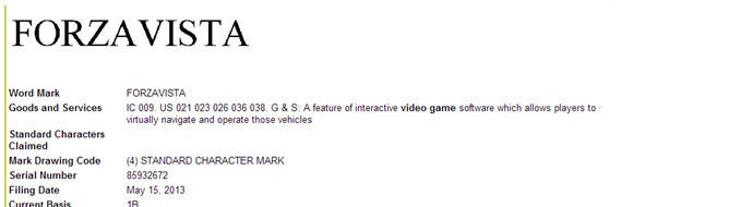 ForzaVista has been trademarked by Microsoft, ahead of the company's Xbox 720 reveal tomorrow. Cool your jets however, as this doesn't appear to be a game itself, but a feature within a game.