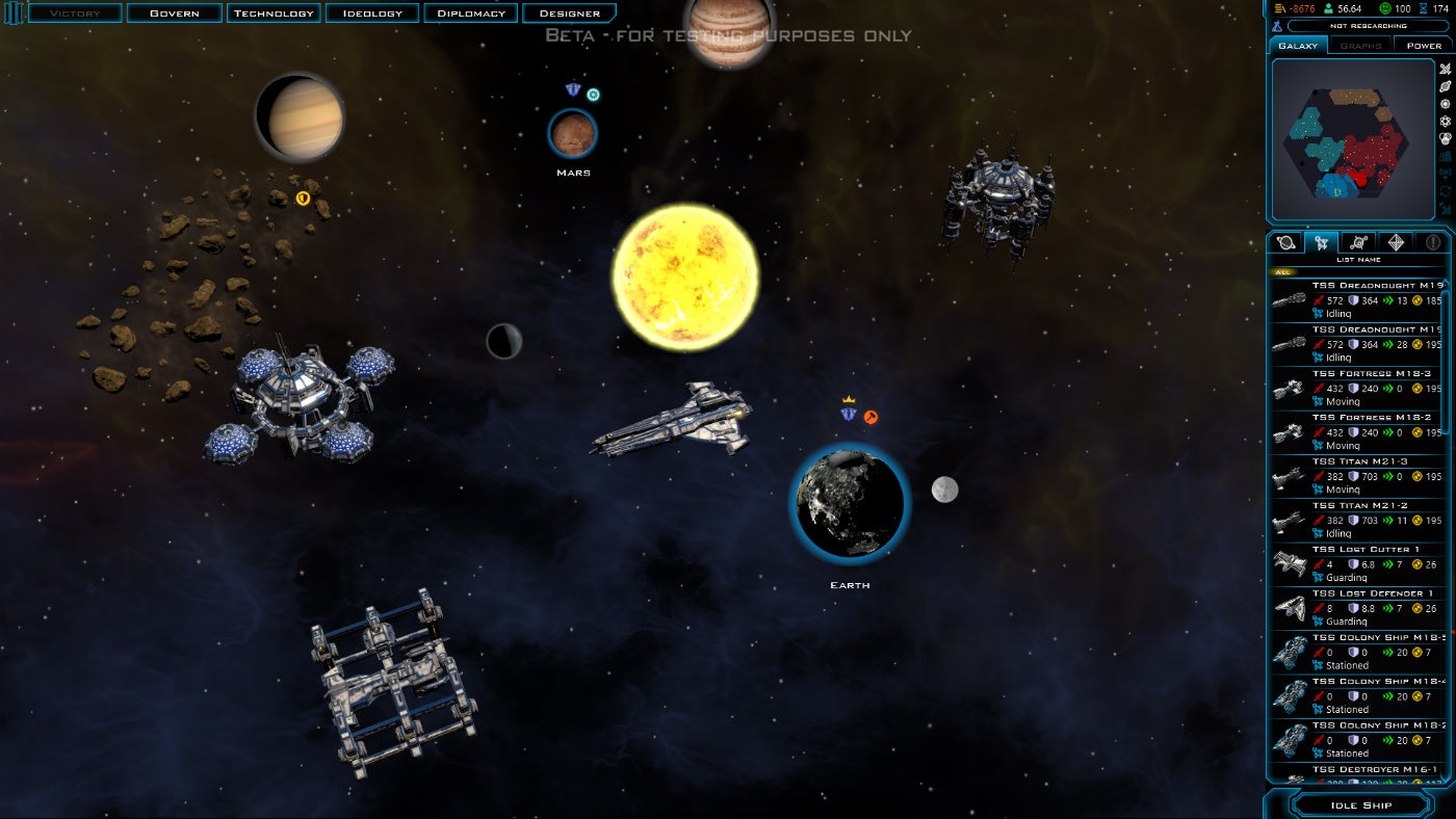 "In Beta 2, we have enabled all but one of the victory conditions," says Boyer. "There's the also the United Planets victory - which isn't in yet - where you get everyone to elect you Supreme Leader of the Galaxy and you win that way."