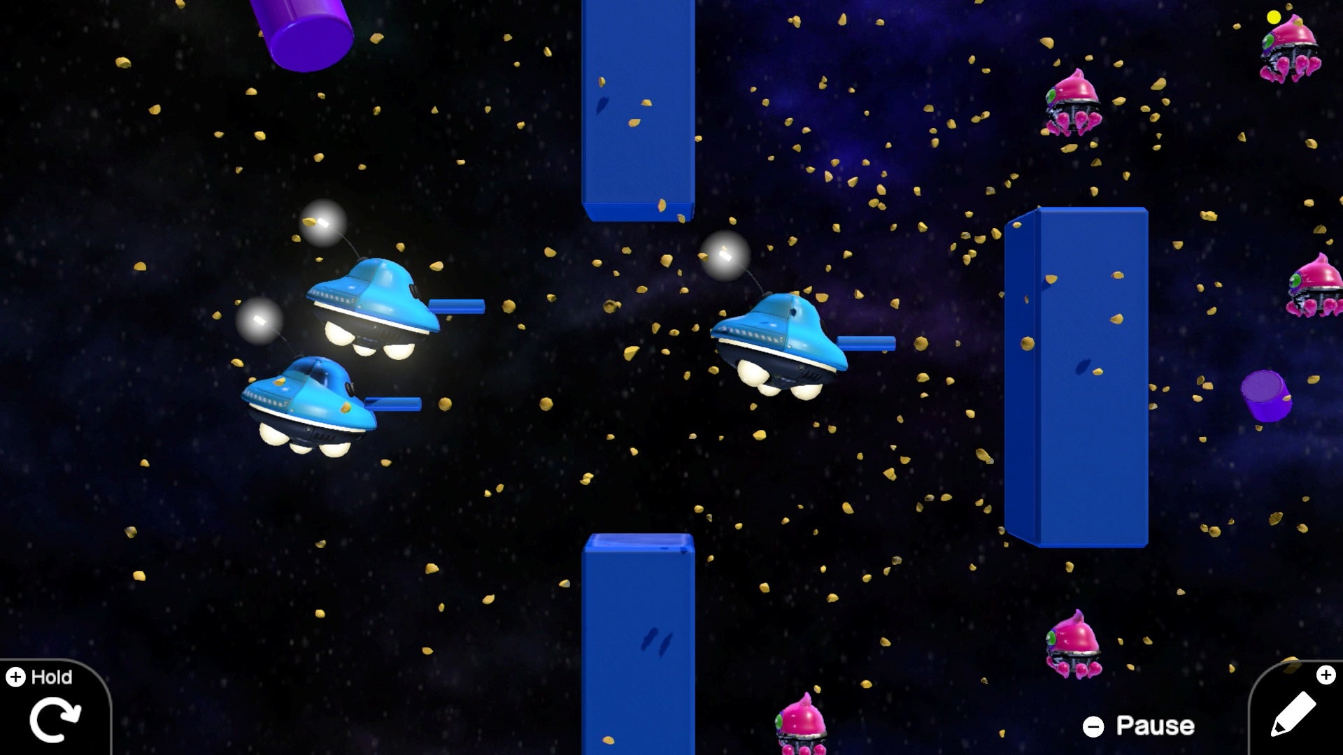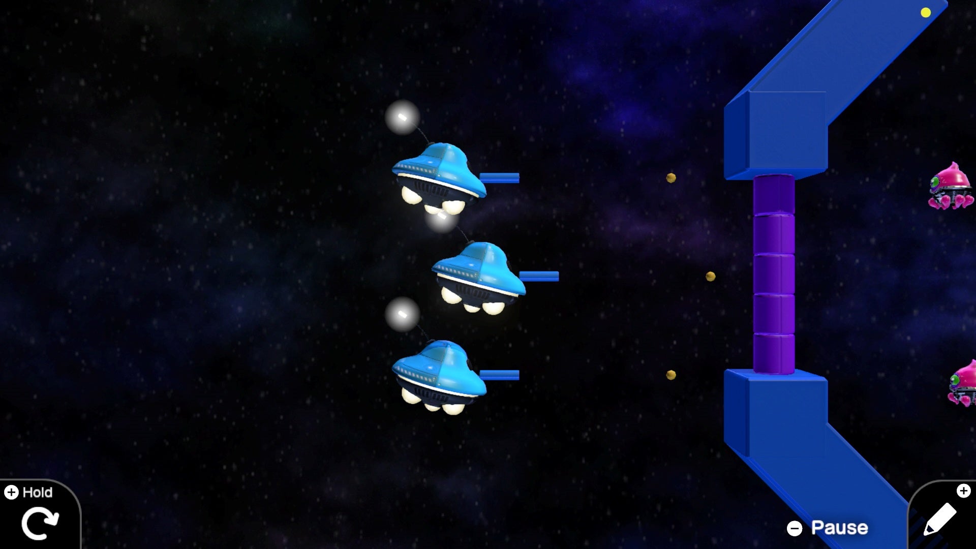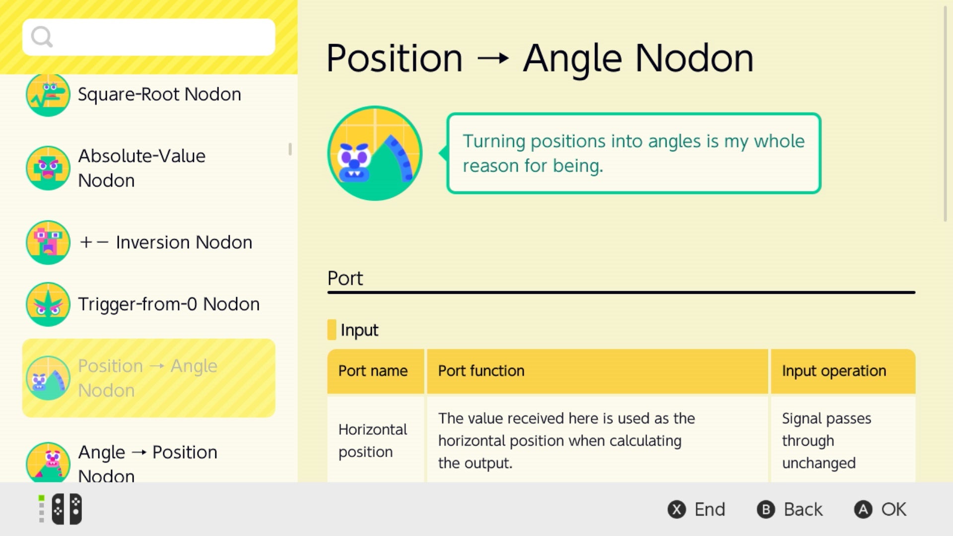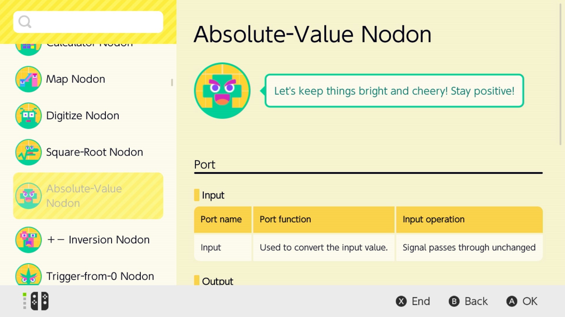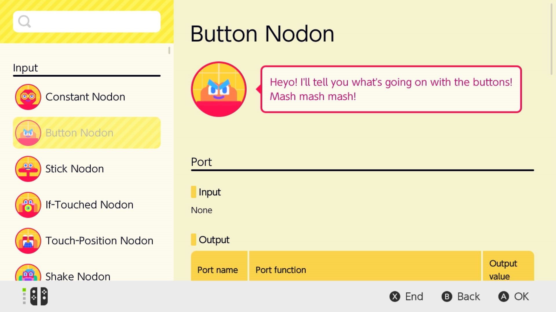 The Nodon talk, make jokes, and each have little personalities. The A button is excitable, bouncy, and always wants to be pressed and part of the action. The retry button is humdrum and depressed, always thinking about how things could be better if they had a do-over - and so on. One Nodon even exists simply to string different levels and creations together - which means you could build a whole game that funnels you from one stage to the next seamlessly.