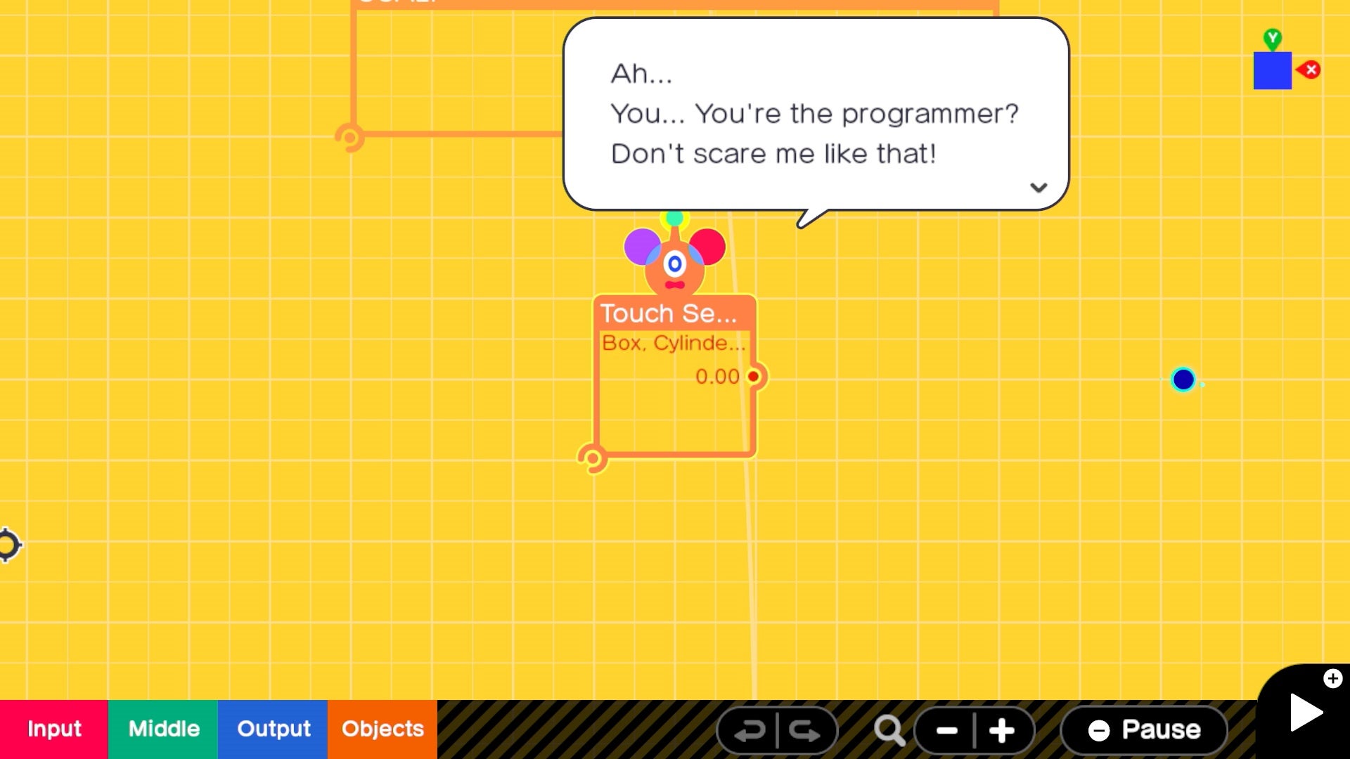 As you build your game, the web of interconnected elements might become overwhelming - but one way in which Nintendo has tried to take the edge of is in making those elements actual characters. They teased this a little in the trailer, but these are the ‘Nodon’, little sentient entities that exist to power your game. The image the developers wanted to evoke was that every game you play is powered by a bunch of little creatures, like Inside Out or Wreck it Ralph or what have you.