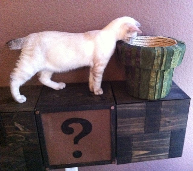 If you've ever found yourself moping over no one ever sends "Thank You!" cards in spite of all the effort you put into holiday gift-giving, here's a suggestion to consider: get something for your cat instead. At least they're honest about taking you for granted. What makes this stylish Super Mario Cat Complex most excellent, however, is its decorous pigmentation. Want to please your cat and demonstrate your love for Italian plumbers without brutally mauling your home's color scheme? No worries!