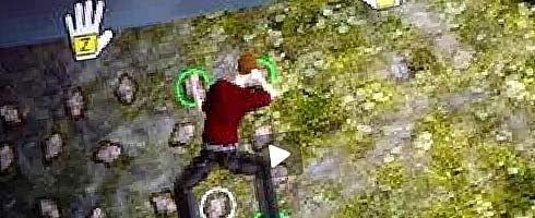 It shows a badly realised man scaling a wall. A person controls the hands and feet of said man using a Wiimote, a Nunchuck and a Balance Board.