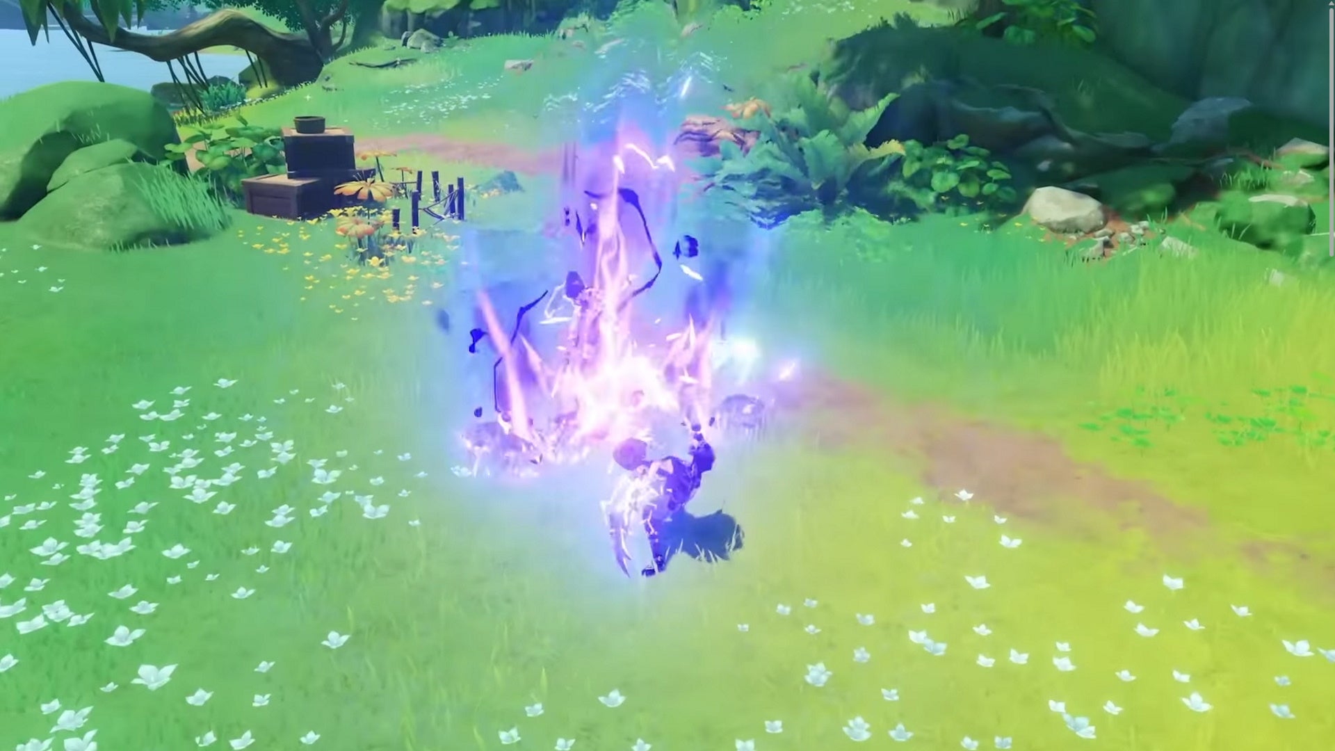 HoYoverse’s Dendro blog didn’t name this reaction, but in the beta and leaks leading up to Genshin 3.0’s release, this reaction was called Hyperbloom. Using Electro on a Dendro Core creates a homing arrow that tracks a nearby foe and deals additional Electro damage.