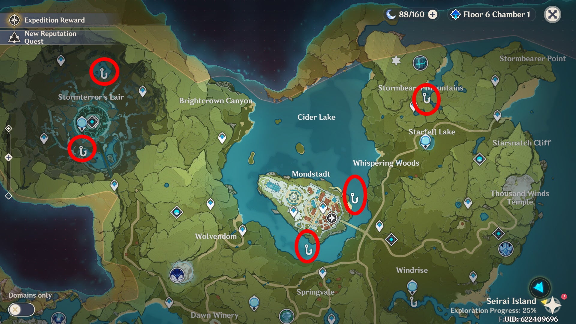 Genshin Impact fishing spots — Mondstadt