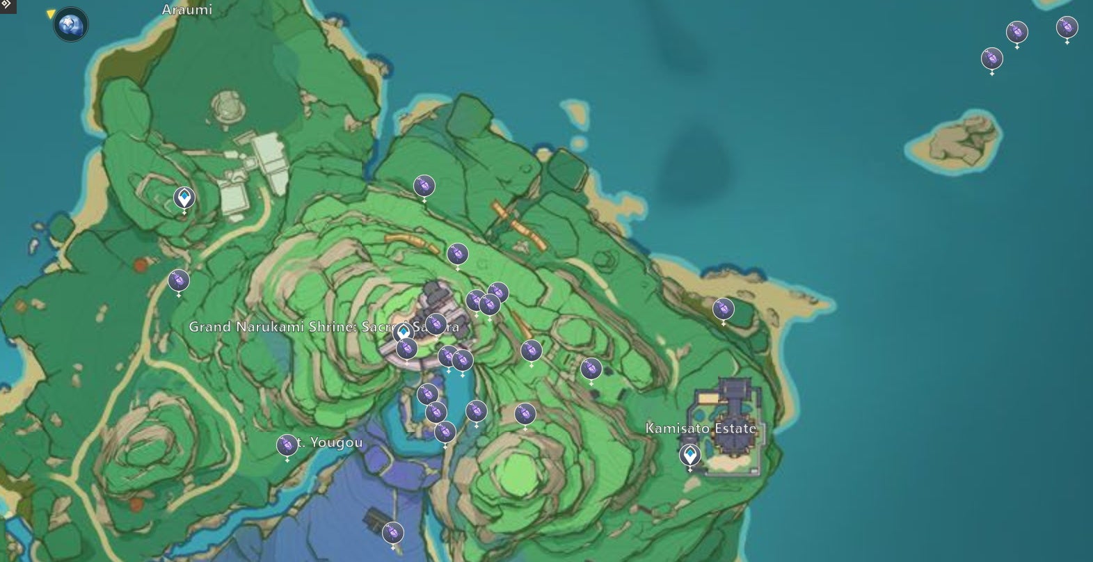Most Onikabuto live around the Grand Narukami Shrine. A handful are on the massive tree branches under Mt Yougou, though you need to clear Sacred Sakura Cleansing first to access the area, and a few are waiting for you outside the Shogun’s residence in Inazuma City.