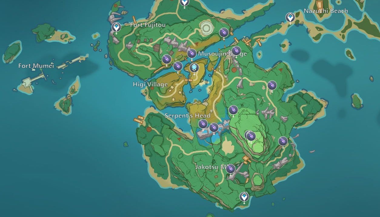 Onikabuto are a local speciality in Inazuma, which means you can only find them there. Unlike some local specialties, such as Naku Weed, Onikabuto are a bit difficult to find. The purple beetles live on trees, except in a few cases, but the locations are scattered in what seems like random places. It’s definitely not the most efficient resource to farm, but with a bit of practice, you can usually get all 70+ Onikabuto in about 15 minutes or so.