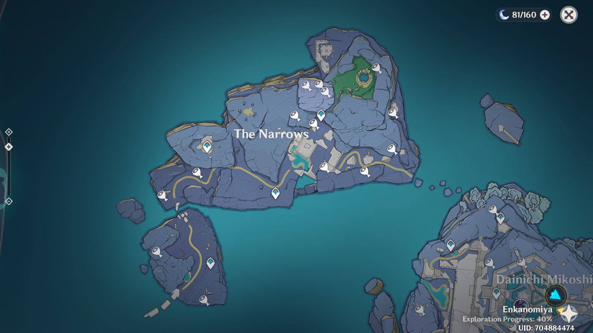 To get there, head to the small island East of The Narrows, and walk to the top-most point. There you’ll find a water gate - which you can hop into to traverse all the way to the island.