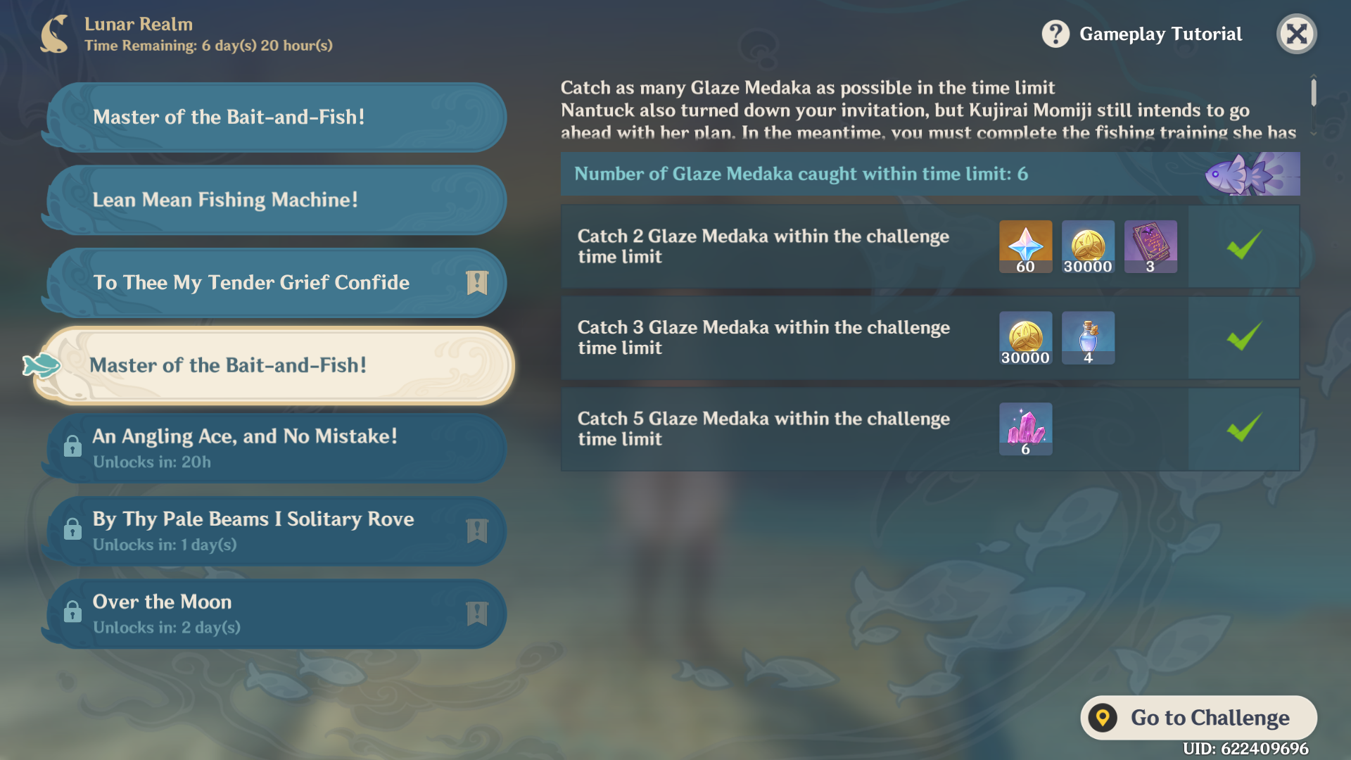 Stick around and catch some extra fish to trade at the Fishing Associations for new rods or The Catch polearm as well. Fish respawn at challenge spots immediately, unlike normal fishing spots, and you can catch up to 50 fish this way.
