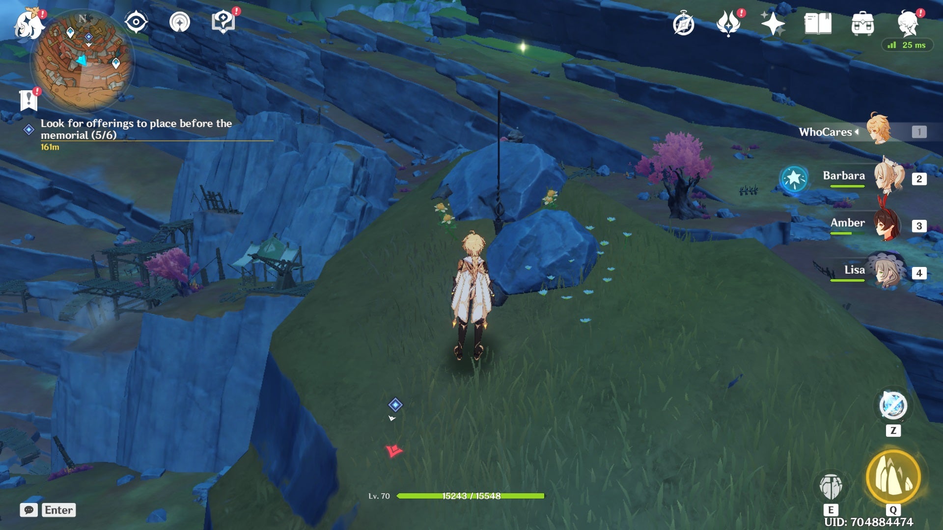 This item can be found directly south of the Quest NPC, up a steep mountain. To reach it, all you have to do is start climbing to the peak. Once there, you’ll find the spear stuck in the ground next to a few flowers.