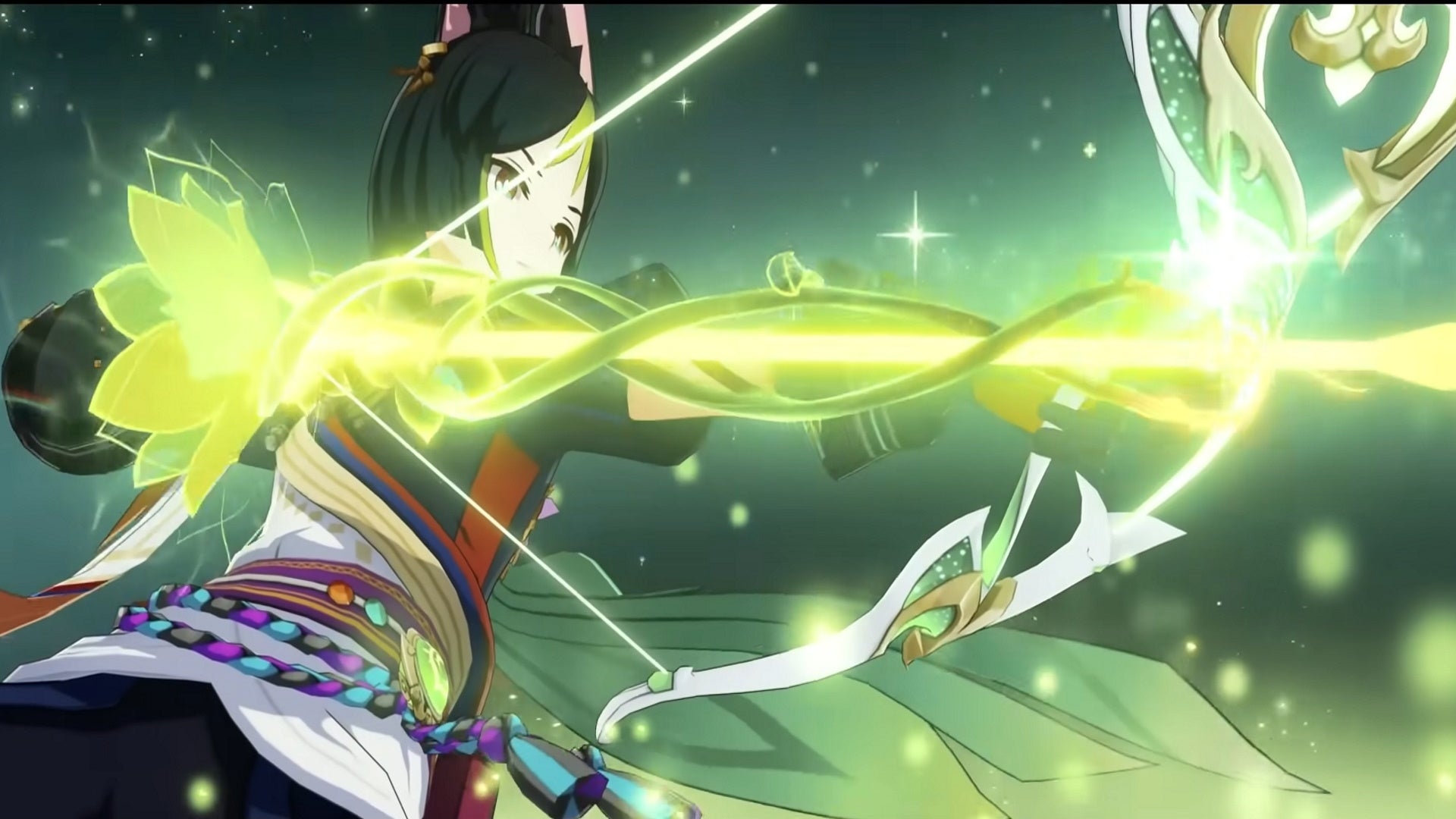 Like Yoimiya, his charged attack also has two levels, and at the second level, his shots fire extra Dendro shafts.