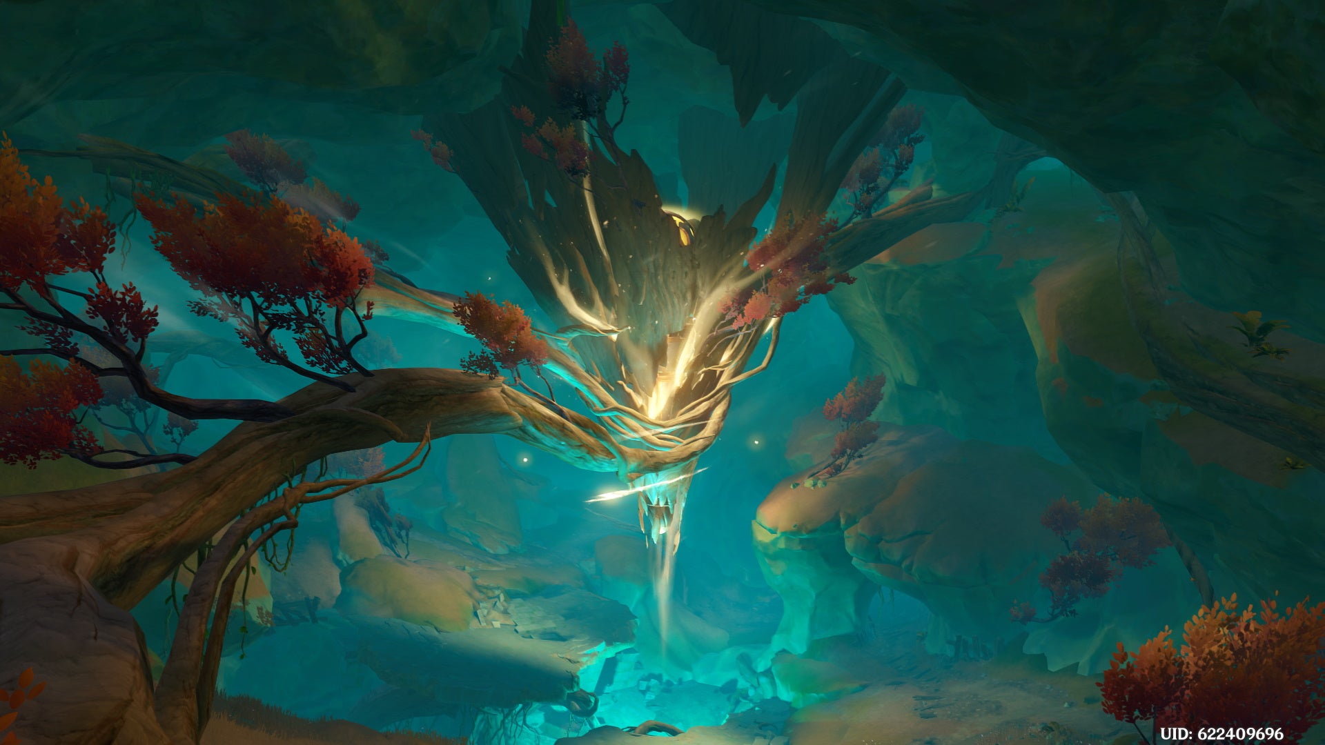 Either way, follow the path of the branches until you reach a new teleport waypoint marker at the top of the cavern. Then zip over to the “suspicious” researcher using another Sigil.