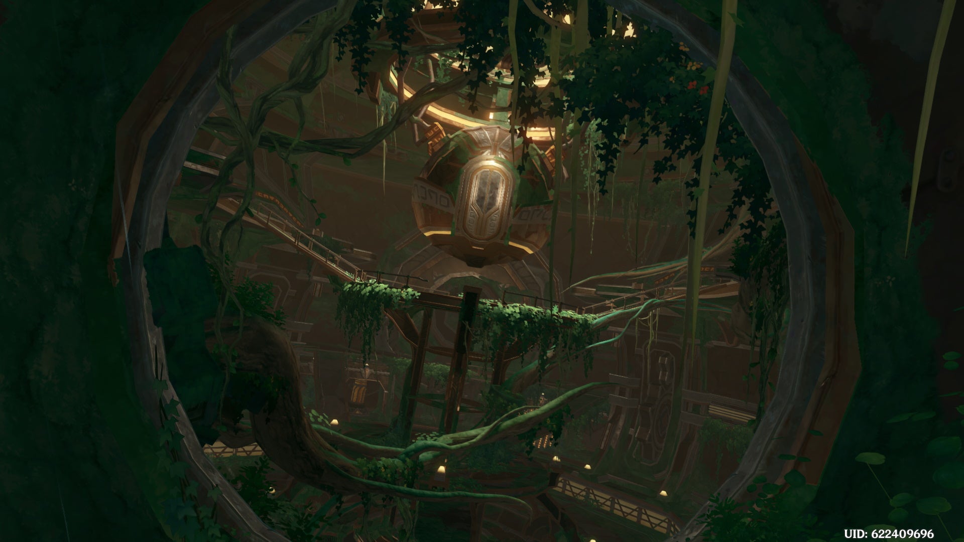 Hop off the platform and glide into the small room at the top of the busted stairs to find the second one. The barrier disappears once the second Seelie reaches its Court, and you can interact with the device to lower the main cavern’s water level.