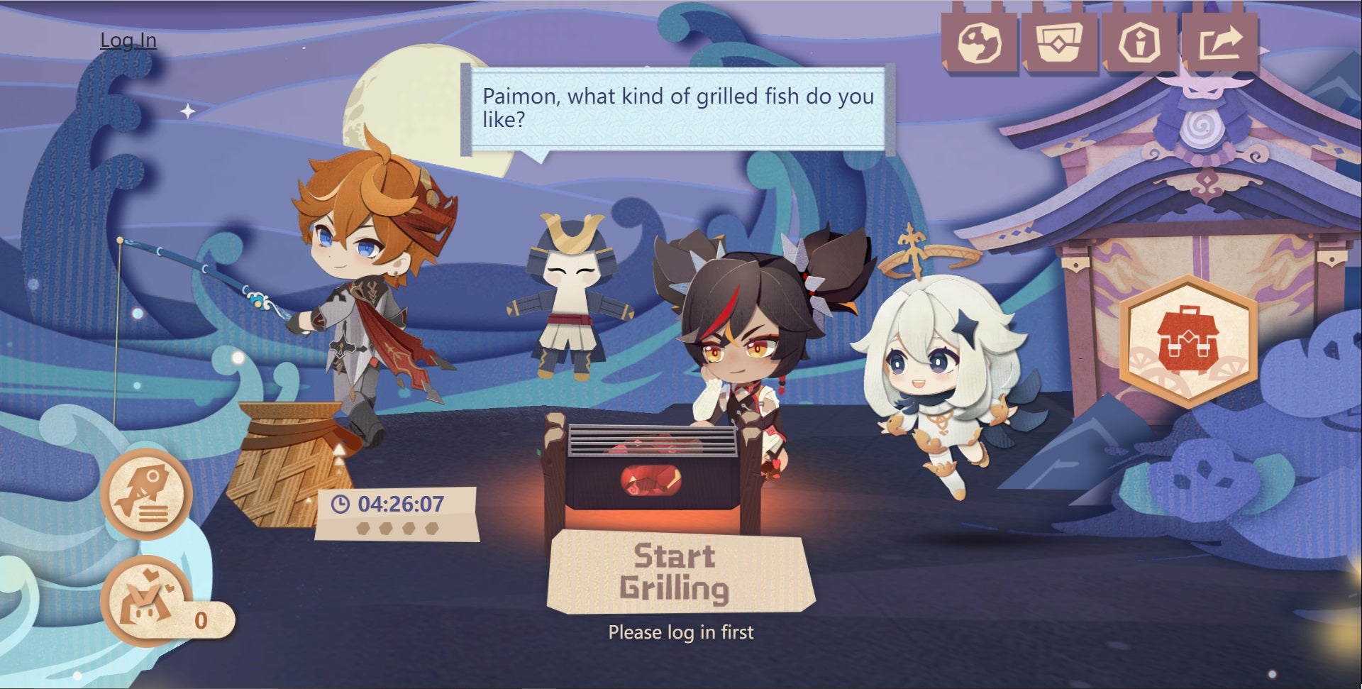 Grill fish with Childe, Xinyan, and Shiki Taishou for limited-time rewards, mora, and primo gems!