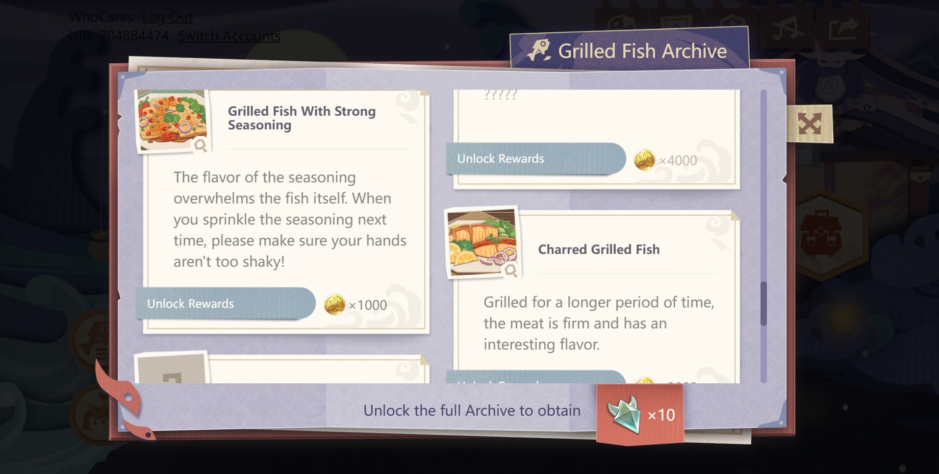 The Grilled Fish archive also features five hidden recipes, with no in-game hints provided to help you discover them. These are: