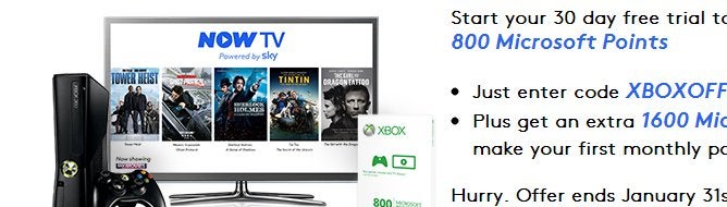 Get 800 MS Points for trying Now TV