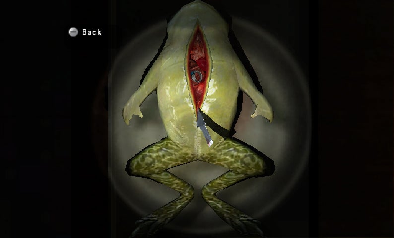 What does become clear remarkably quickly, however, is that your responses to the therapist in the first-person sections -- given either by mutely nodding or shaking your head using the Wii Remote, or occasionally interacting with handouts on the therapist's table -- have subtle impacts on the sections where you're controlling Harry from the third person. An early sequence sees you coloring in a picture of a happy family standing outside their house, for example; a few moments later, Harry comes across a house that is eerily painted in the same gaudy colors you scrawled on the piece of paper earlier.