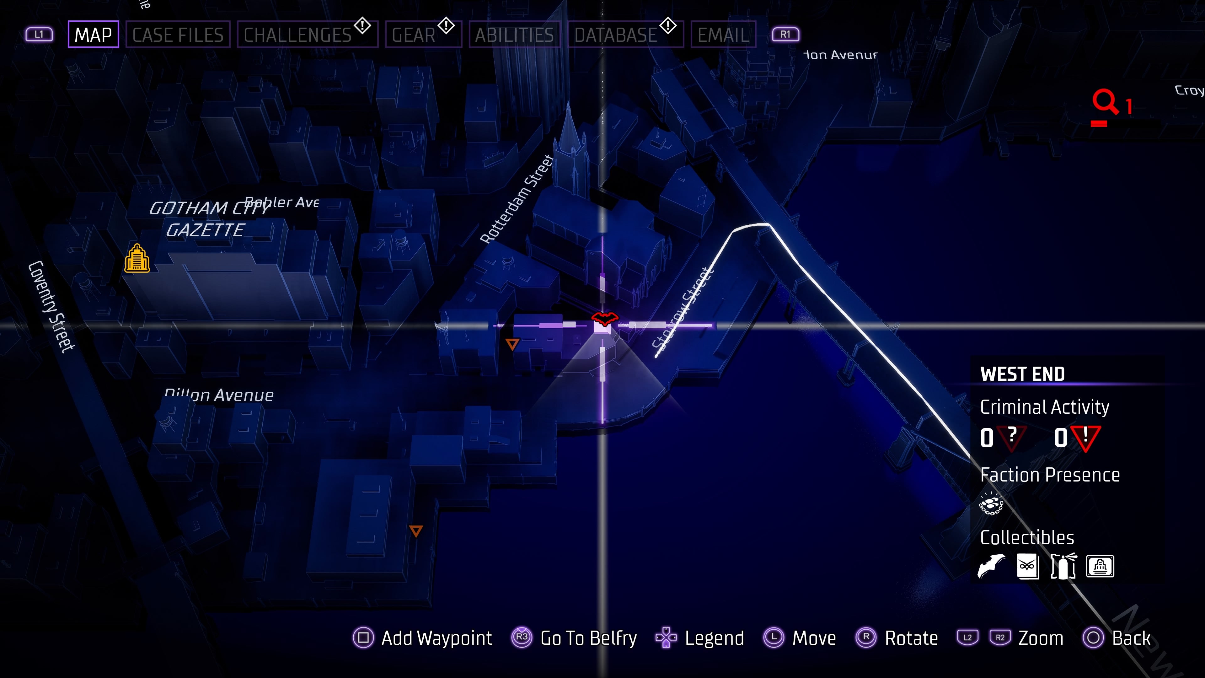 We’ve broken down Batarang locations into their respective region — North Gotham, Downtown Gotham, Historic Gotham, Lower Gotham and New Gotham — which you can quickly jump to via the drop down menu below. We’ve also provided a map screenshot so you should have no problem at all finding each one.