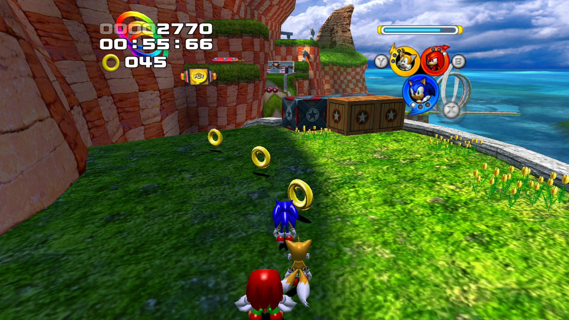 Sonic Heroes has an unwieldy gameplay system that asks players to choose a Sonic team comprised of three members. You'll control have control over all three members of the team during any mission, and swap between them throughout a level. The main Sonic team for example is made-up of the classic trio of Sonic, Knuckles, and Tails. Each character in a team has a class-based specialty like power, flight, and speed. Need to fly over something? Switch to Tails. Got something that you need to break? Knuckles is your dude. Gotta go fast? Tails again. Just kidding, it's your boy Sonic.