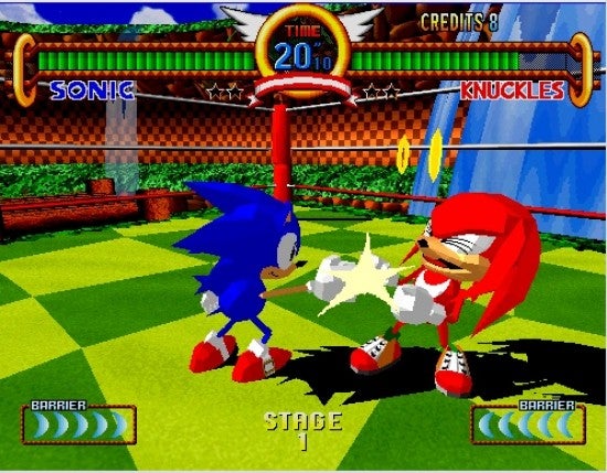 First up was Sonic the Fighters, an arcade fighting game. Sonic the Fighters only exists because AM2 character designer Masahiro Sugiyama threw Sonic and Tails into another Sega fighter, Fighting Vipers, out of boredom. Virtua Fighter creator and designer Yu Suzuki saw it, took it to Sonic boss Yuji Naka, and the rest is history. Sonic the Fighters was a poor version of the Virtua Fighter games and didn't really get a wide release until the GameCube and PlayStation 2 release in 2005.
