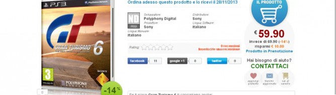 Gran Turismo 6 appears in another retail listing with dummy pack art