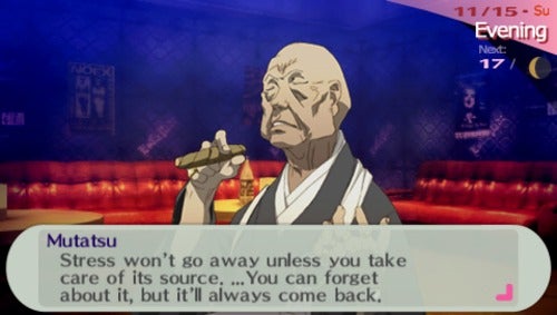 Somewhat closer to the mainstream, we have offerings like Atlus' excellent Persona series, which, with its third and fourth installments, decided to place as much emphasis on the main cast's "real lives" as on the parts where they were fighting Shadows and saving the world. The most interesting moments in the Persona series are not the parts where you're battling gigantic world-devouring beasts, they're the parts where you're hanging out with an old monk who hasn't seen his son in ages; the parts where you're comforting a man dying from a terminal illness; the parts where you're helping a party member deal with his sexuality and the image he puts across to everyone.