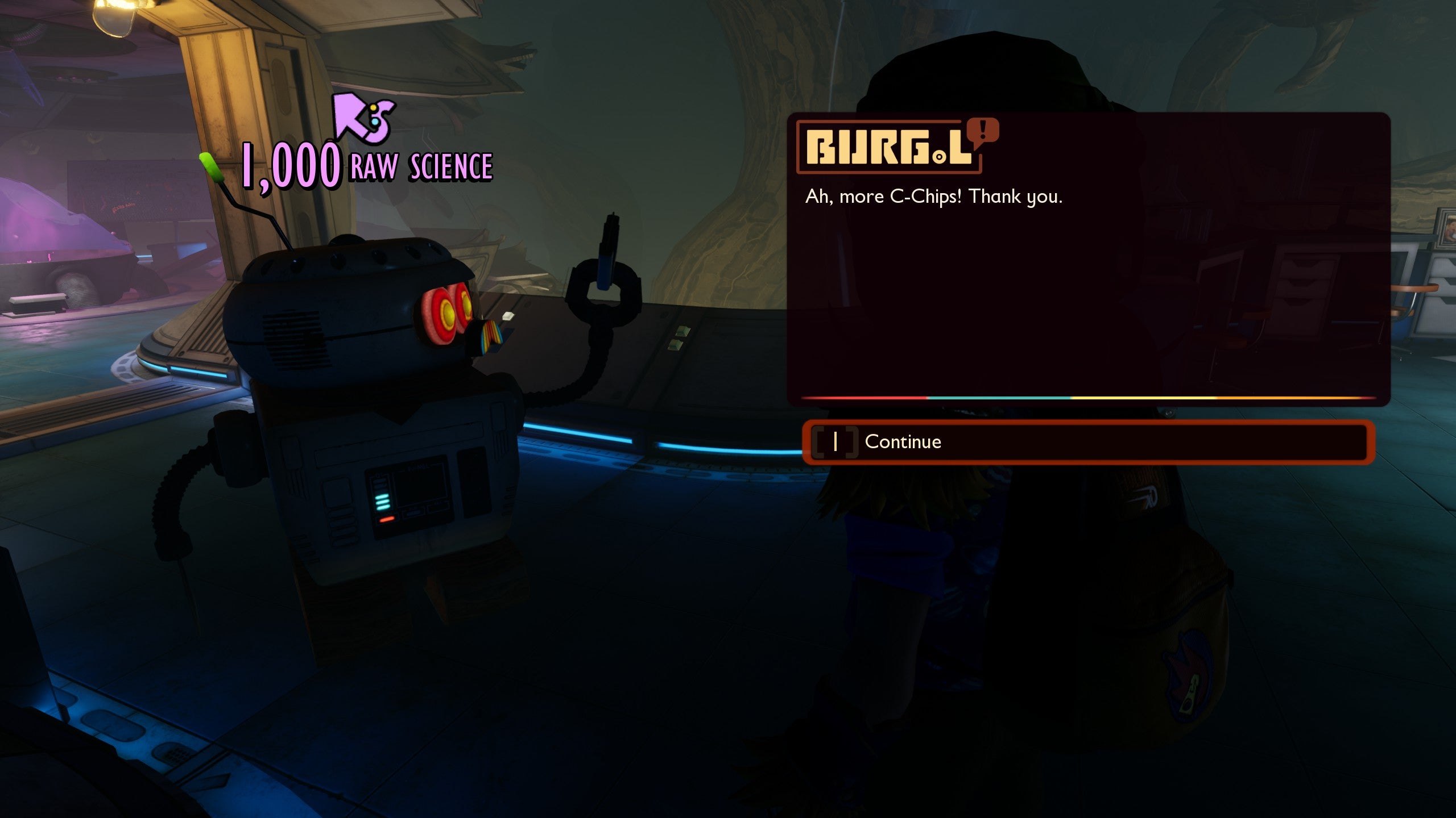 Return to BURGL and give him the chip. This unlocks a swathe of new recipes from the science shop, including a useful stamina-boosting mutation.