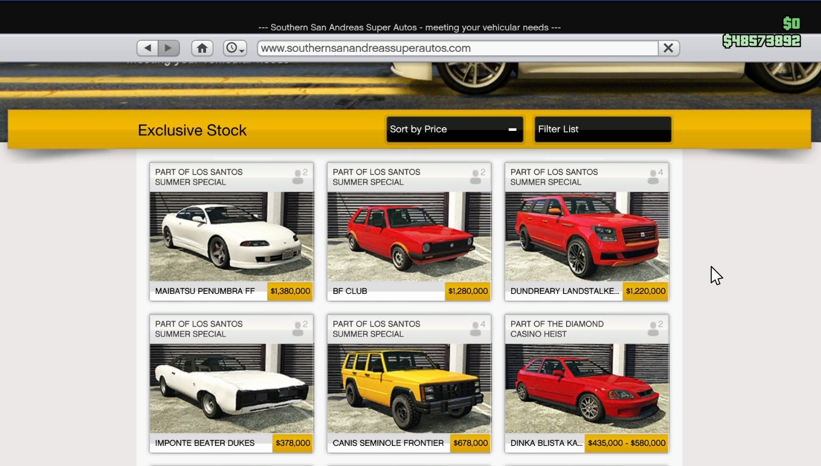 Southern San Andreas Super Autos new car prices
