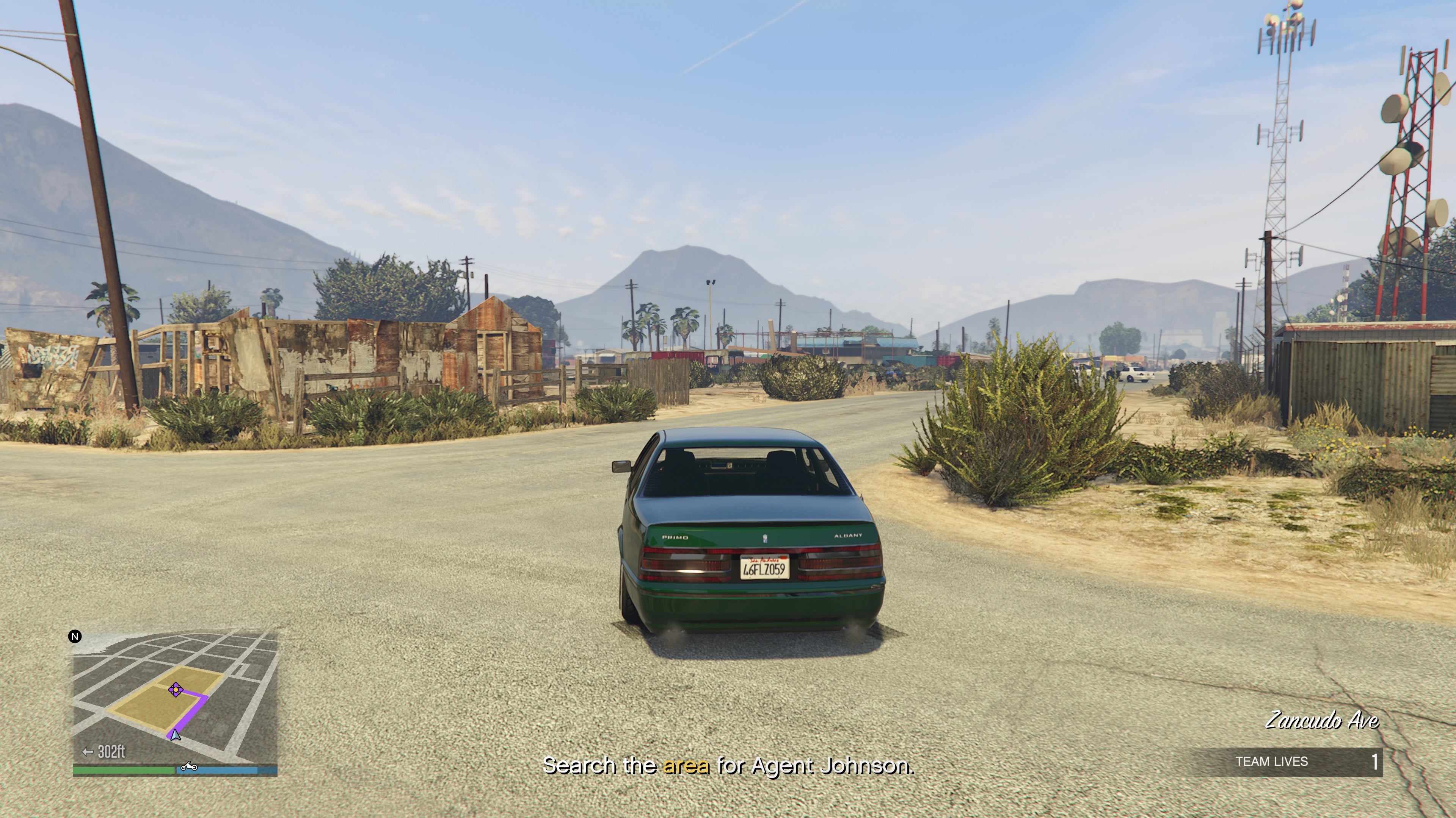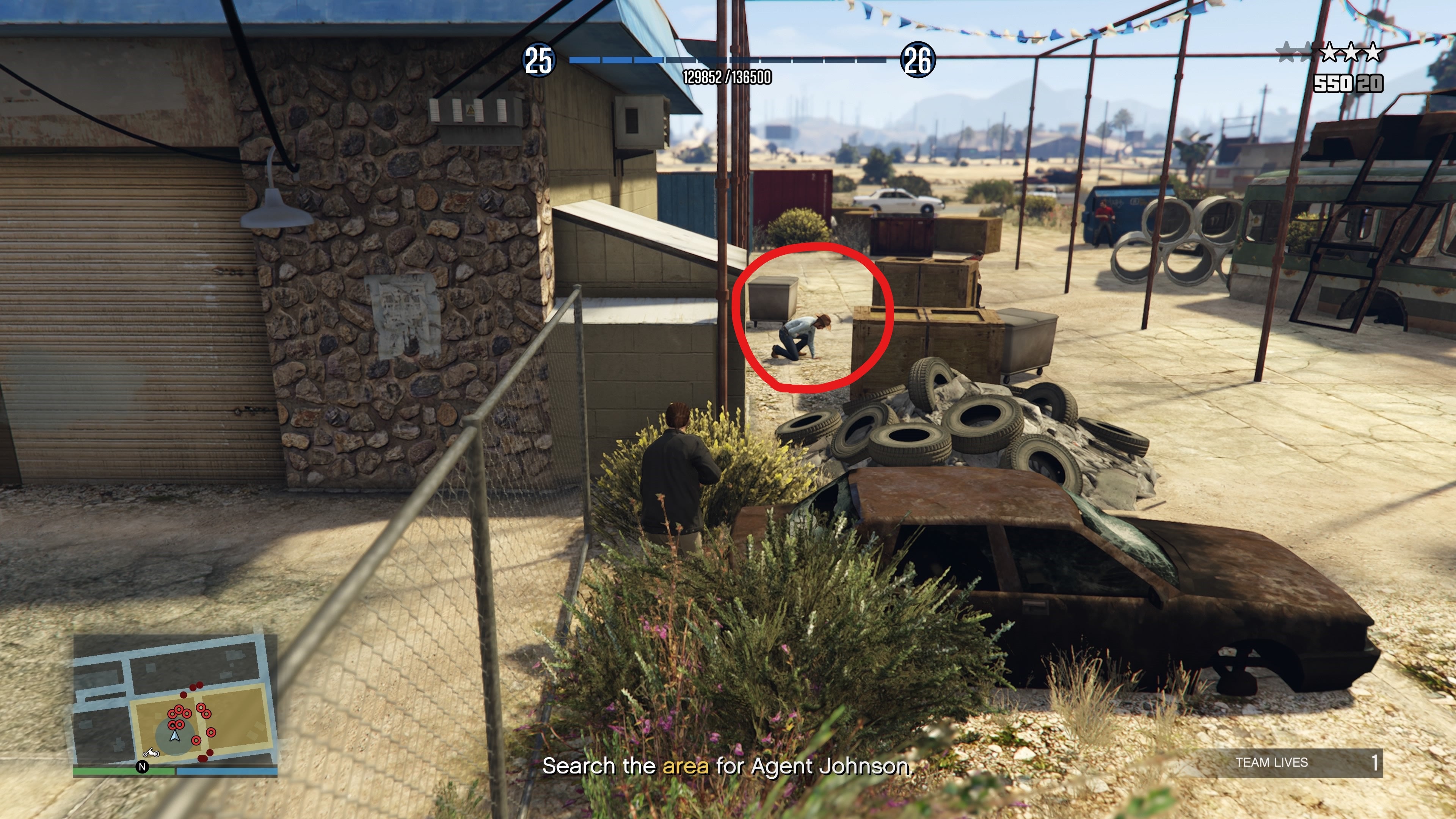 We recommend you approach from the north corner of the mission area. That way, you’re sneaking by most of the gang members and cops shooting it out. Walking towards the centre, you’ll walk by an off-roader. Get inside, then reverse to the agent’s location.