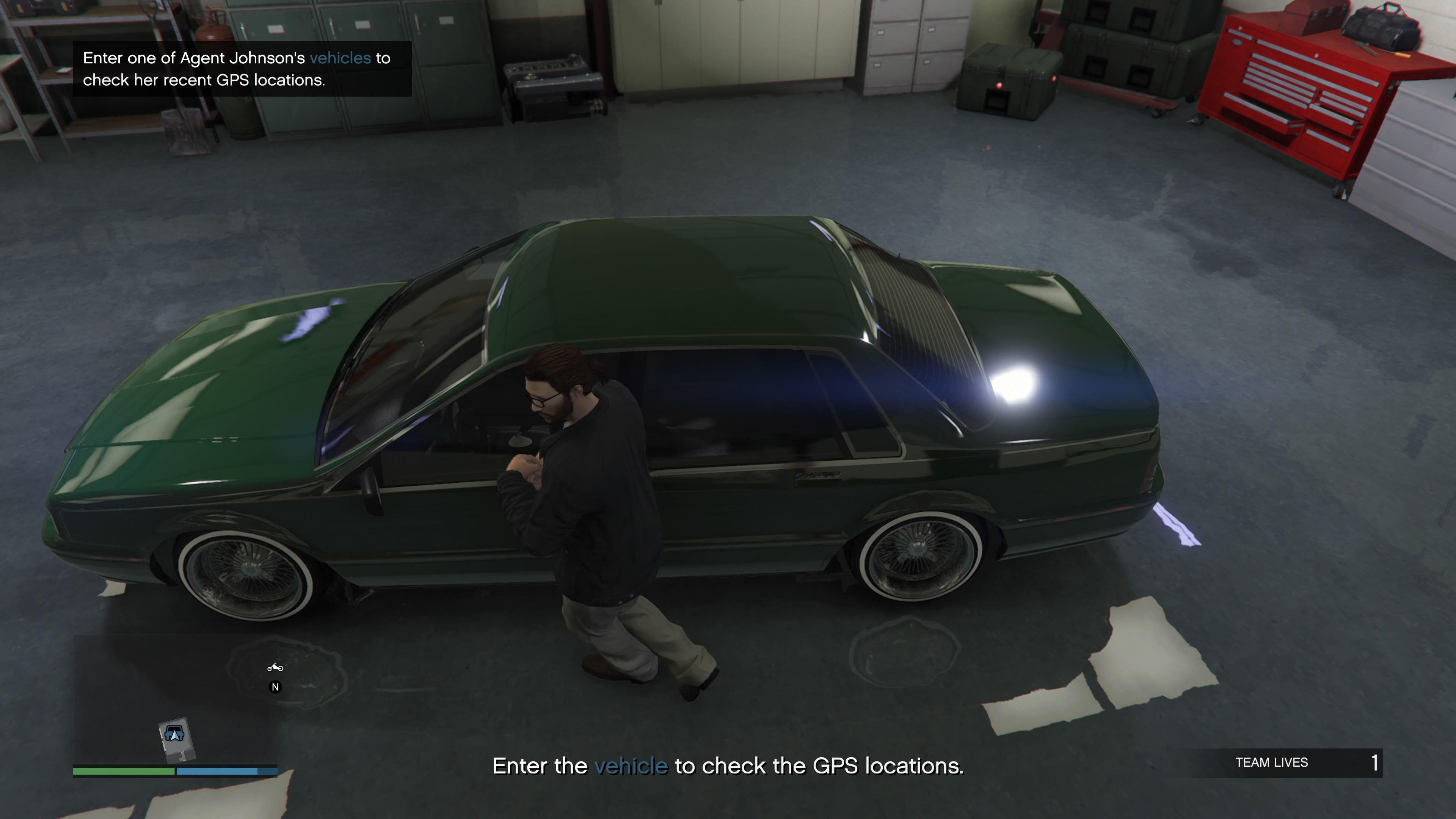The first thing you’ll have to do is head to the agent’s garage. Once inside, you need to look for clues. Do a perimeter around the room, checking green boxes, files, and laptops as you walk around. Once you’ve searched them all, you’ll get a call to break into the agent’s car in the centre of the room, which will then mark your map with all three mission locations.