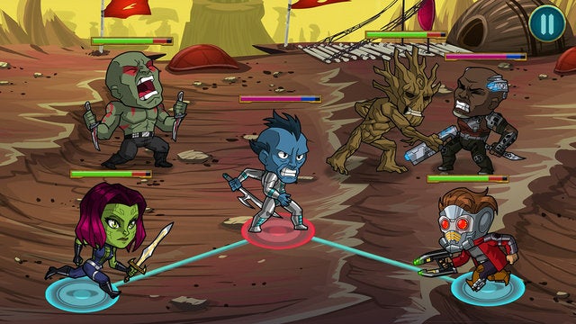 Marvel's Guardians of the Galaxy, directed by James Gunn, is out in theatres tomorrow. If you're a comics fan like I am, you probably have your early screening tickets for tonight in-hand. While swimming in the hype, I decided to take a look at the official Guardians of the Galaxy game on mobile platforms. What I found was Guardians of the Galaxy: The Universal Weapon, a pretty solid role-playing game. It has good character designs, decent gameplay, and a number of characters and items to unlock for only $4.99. Plus, no additional microtransactions!