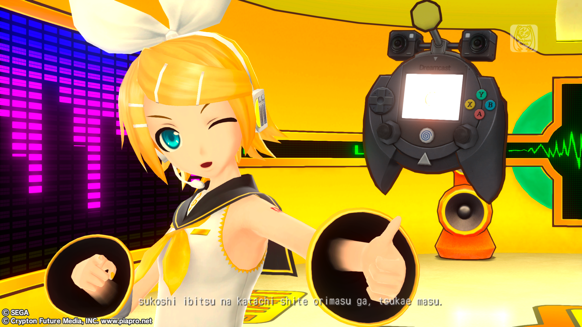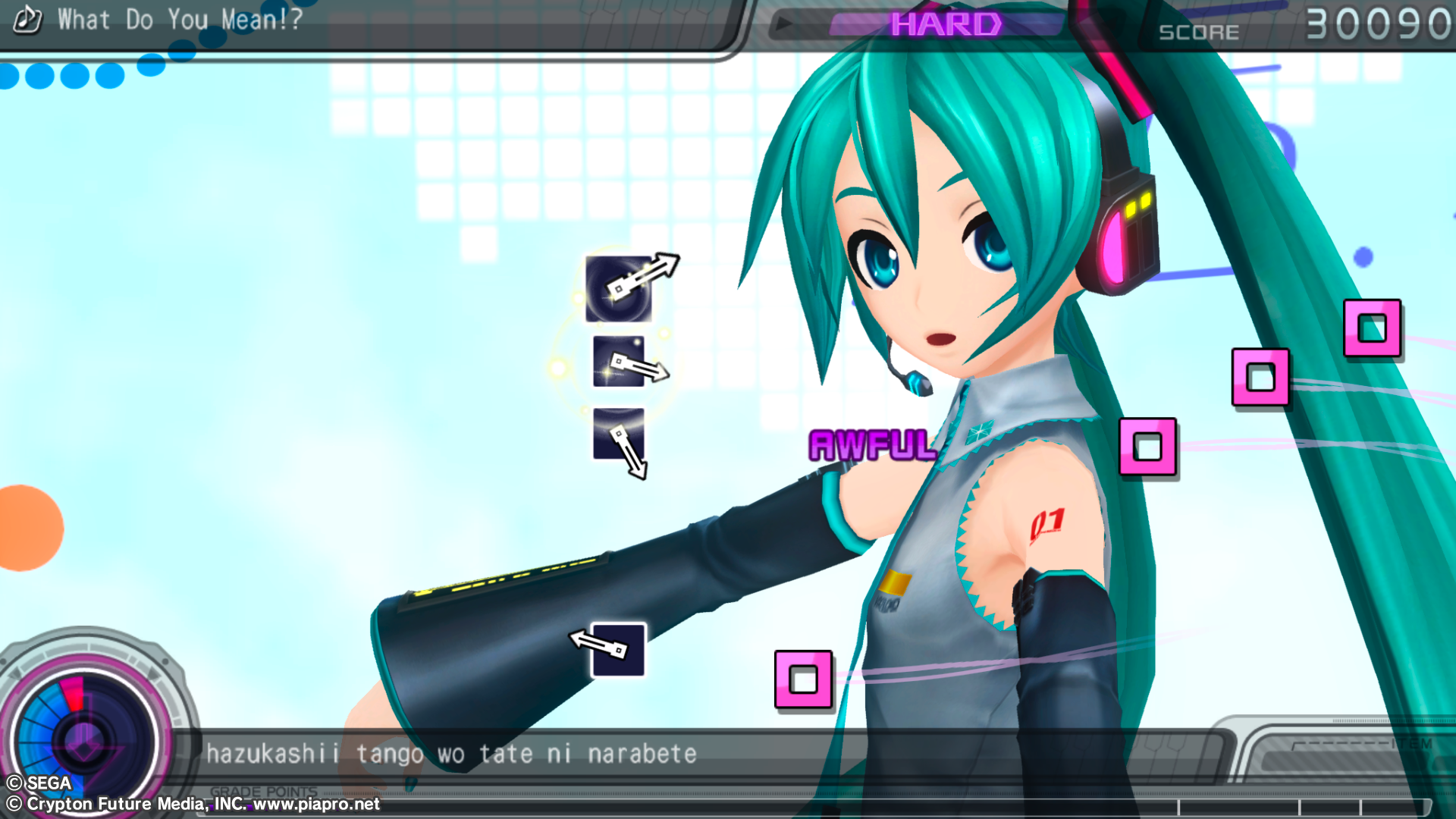 They've ticked all the usual boxes for Miku: Press the correct buttons in time with the music while characters in the background prance about, look generically badass, or party with astronauts who also happen to be cats. Sometimes you have to hold a button down or press two of them at the same time, but it never get more complicated than that. Nothing too mind-blowing here.