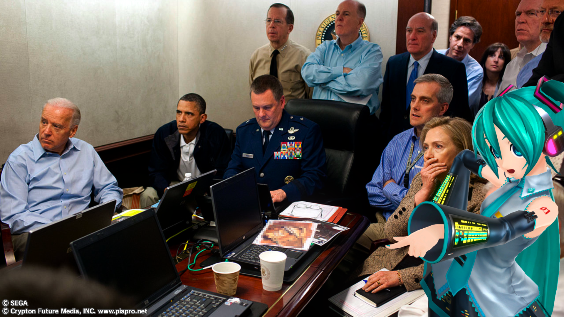 It gets weirder, though. This long-running Japanese franchise takes its namesake from Hatsune Miku, a virtual pop star (or "vocaloid") who performs onstage via projectors at actual concert venues all over the world. The closest Western equivalent would likely be the British band Gorillaz, although their cartoon avatars all correspond to human musicians working behind the scenes. Miku, on the other hand, is one-hundred percent synthetic -- from her dance moves to her singing voice.