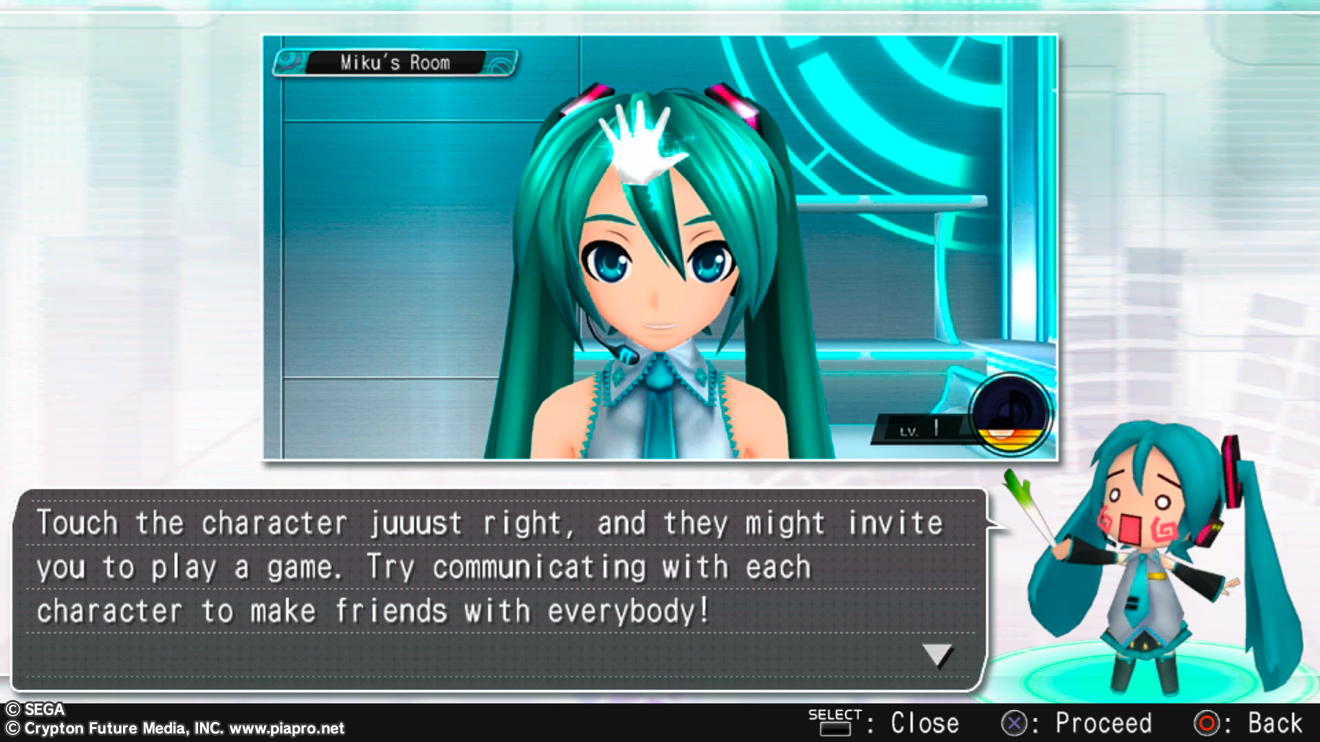 The game's secondary modes aren't as easy for me to dismiss. Specifically, I'm not so keen on the part where the game lets you observe Miku and friends while they do jumping jacks in their futuristic apartments. Oh, and you're also supposed to rub them down with a digital hand in order to "build affinity" or something? What? Honestly, I don't know who this is for, but it's not for me.