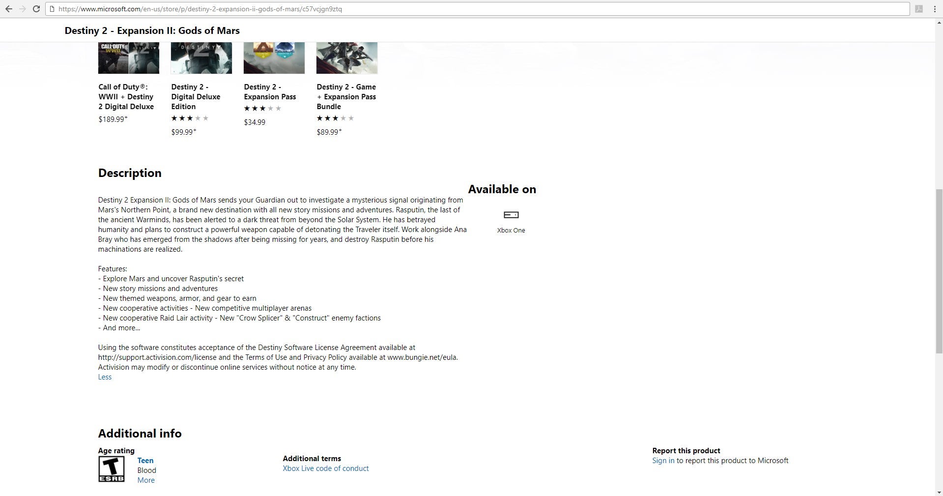 Finally, Destiny expansion descriptions never reveal that many details about their story. Compare this to Curse of Osiris' Xbox listing, and you'll see how verbose the Gods of Mars listing is, going into many story details you would typically need to play to uncover.
