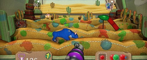 Basically, it's a shooting range called LittleBigDerby where Sackboy shoots paintballs at targets. The more you hit, the more points you earn, thus allowing your racer to progress faster towards the finish line. You can also play with up to seven other people.